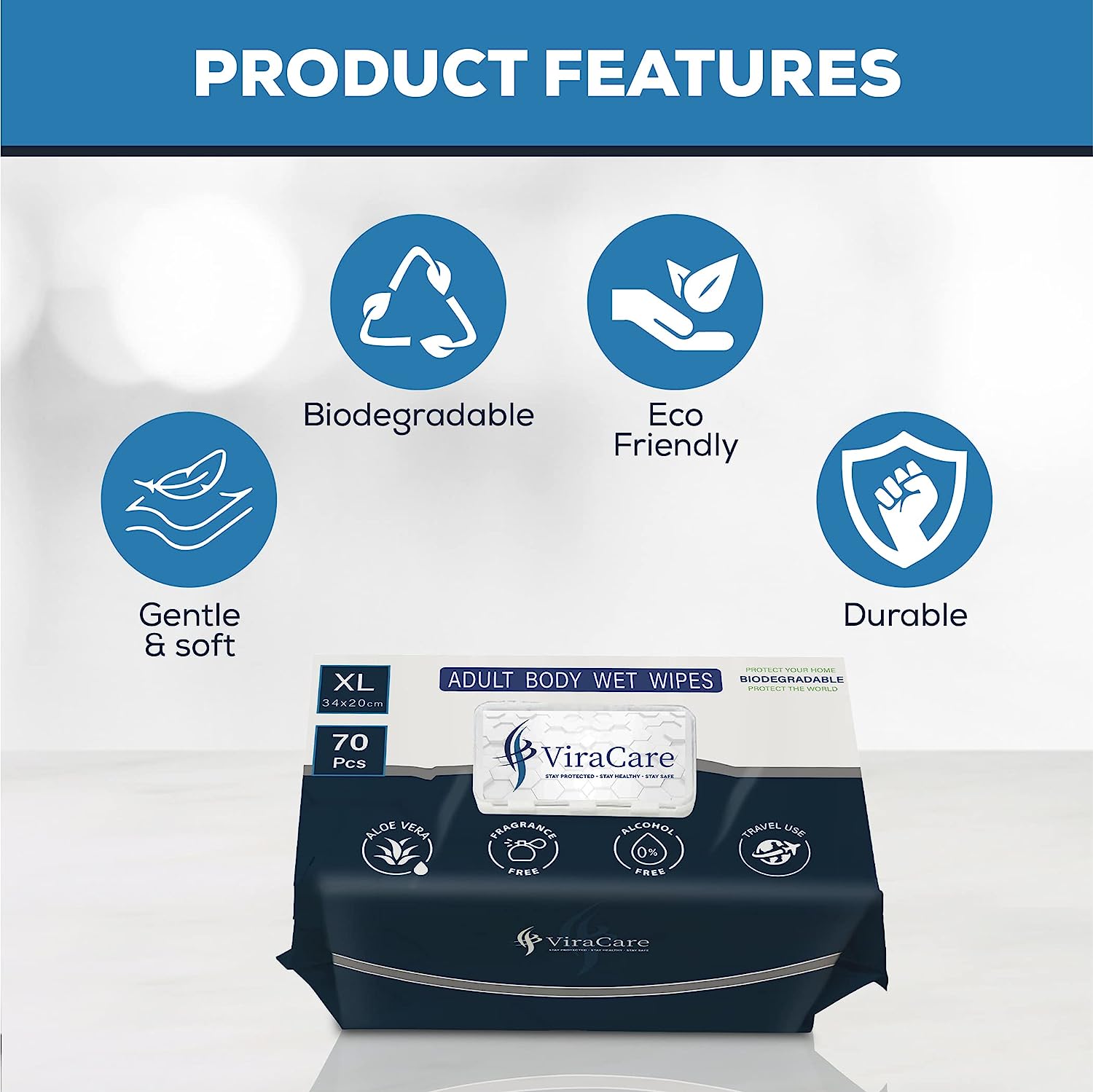 GENTLE, SOFT & WITH ALOE VERA WET WIPES: Our cleansing intimate wipes are pre-moistened with an aloe-based cleansing formula to cleanse, moisturize, and soothe skin. Our wet wipes antibacterial have a unique formula which contains natural Aloe Vera to keep the body fresh and moisturized for a longer-lasting period. Our wet wipes for adults leave the skin soft and clean.