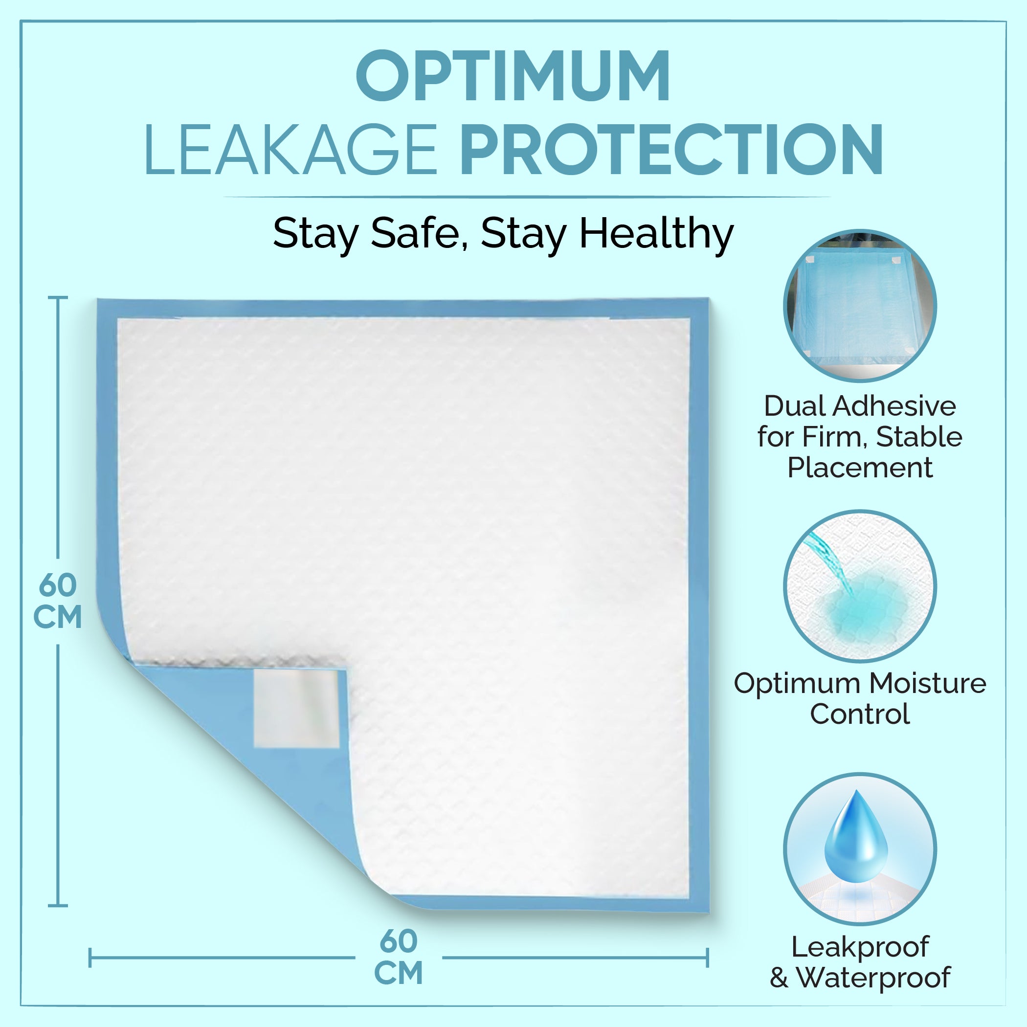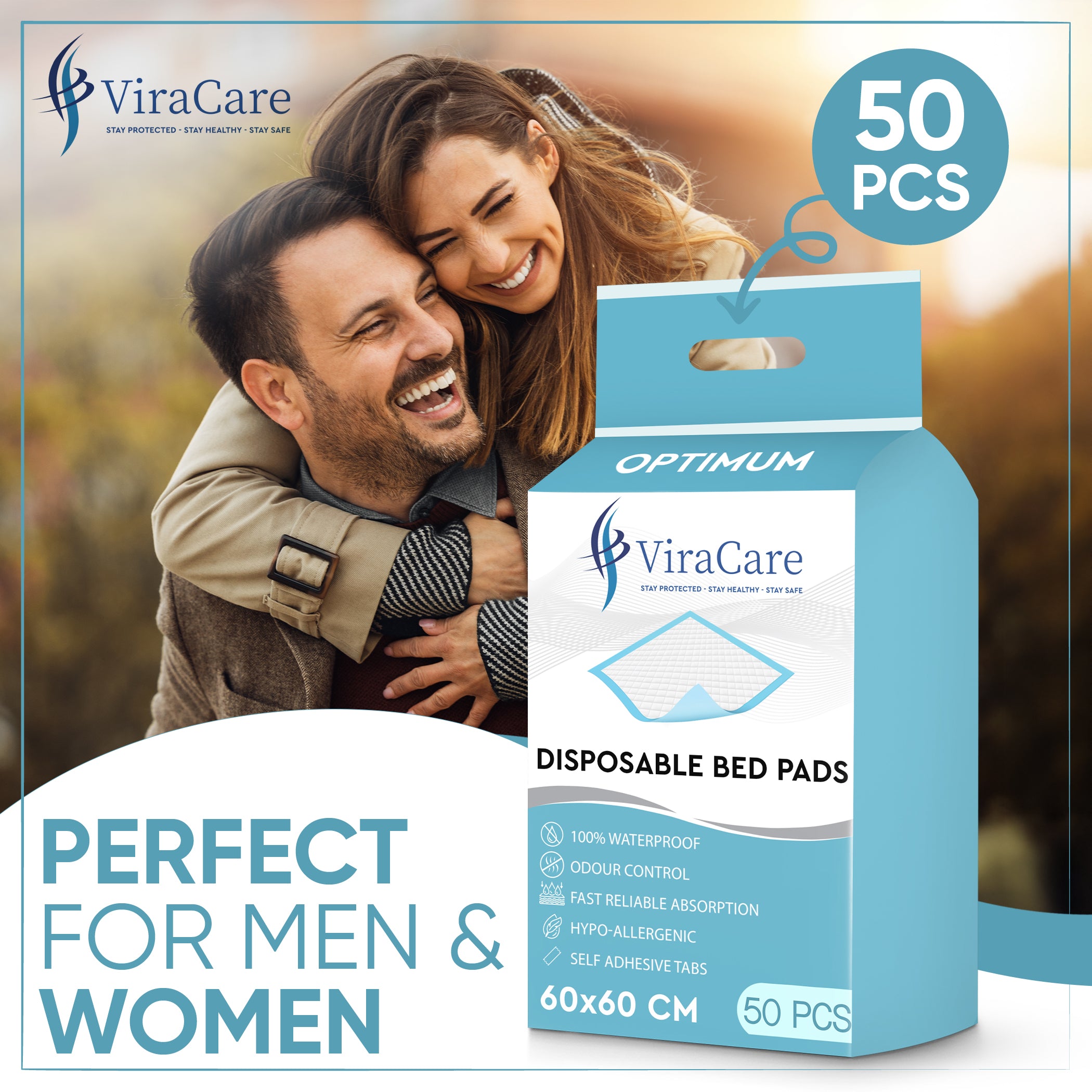 STRONG SELF-ADHESIVE DESIGN: ViraCare incontinence bed pads comes with dual-sided self-adhesive tabs that hold it firmly in place, preventing any movement during use. The strong yet gentle adhesive ensures a secure fit on any surface, offering stability and comfort. It is easy to apply and remove, leaving no residue behind for a clean and hassle-free experience.