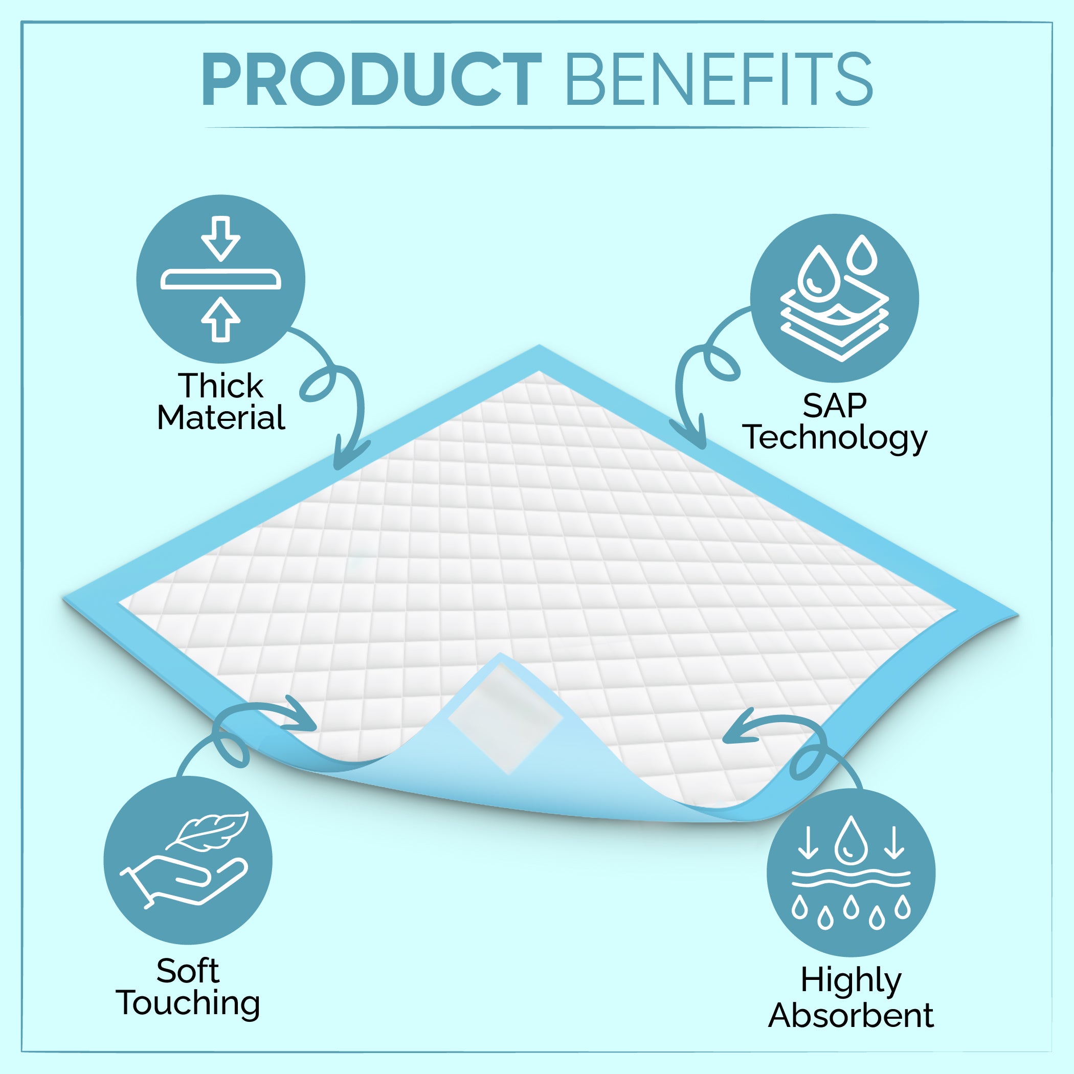 DISPOSABLE & HYGIENIC: Disposable pads are designed to be more hygienic and easier to use. Each pad, once used, needs to be disposed thus minimizing the clean-up. This keeps all furniture clean and fresh. Bed pads consist of a soft top layer with 100% waterproof backing, making them highly reliable and effective.