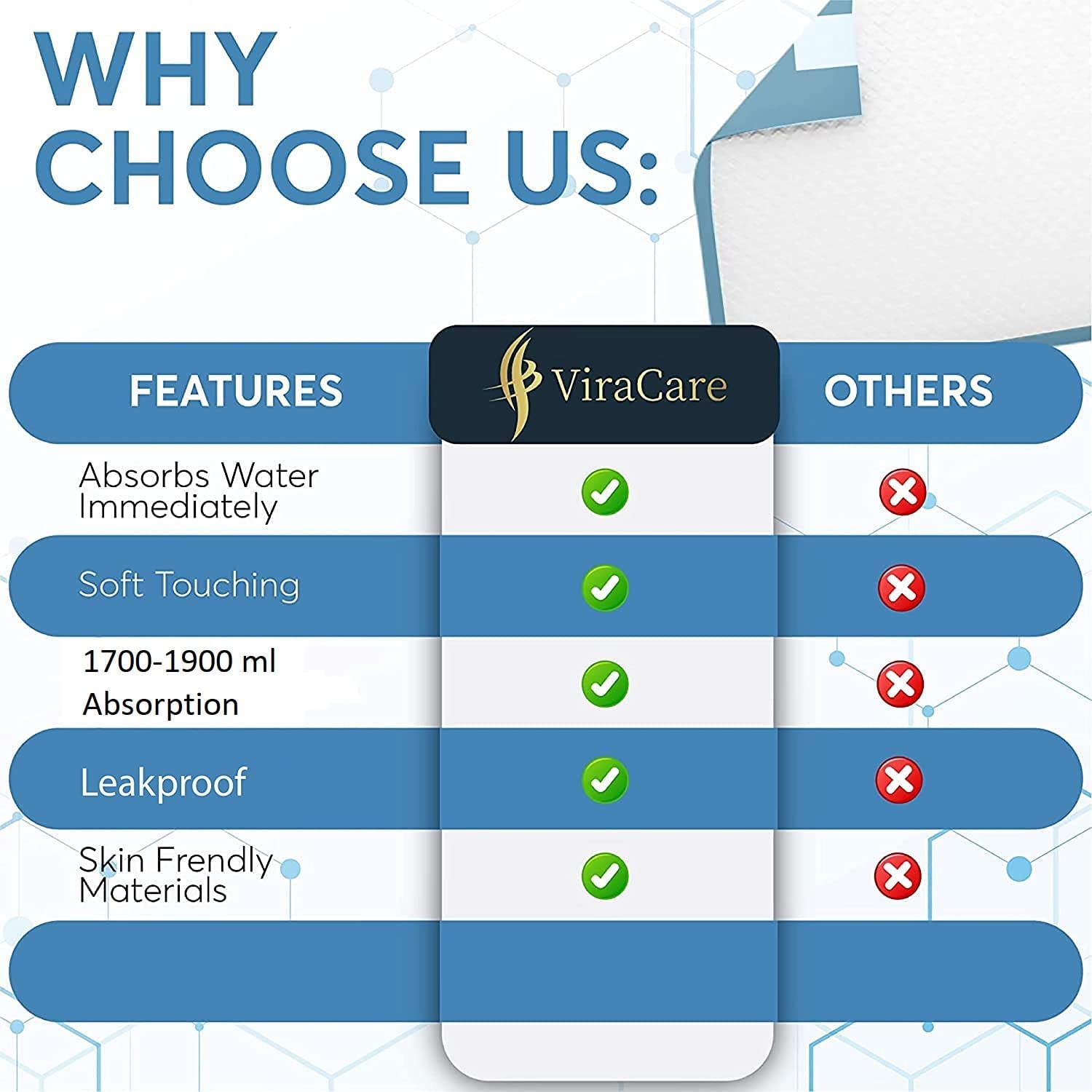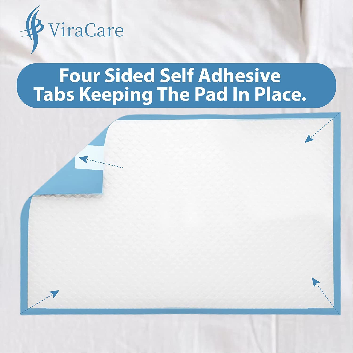 STRONG SELF-ADHESIVE DESIGN: ViraCare incontinence bed pads comes with four-sided self-adhesive tabs that hold it firmly in place, preventing any movement during use. The strong yet gentle adhesive ensures a secure fit on any surface, offering stability and comfort. It is easy to apply and remove, leaving no residue behind for a clean and hassle-free experience.