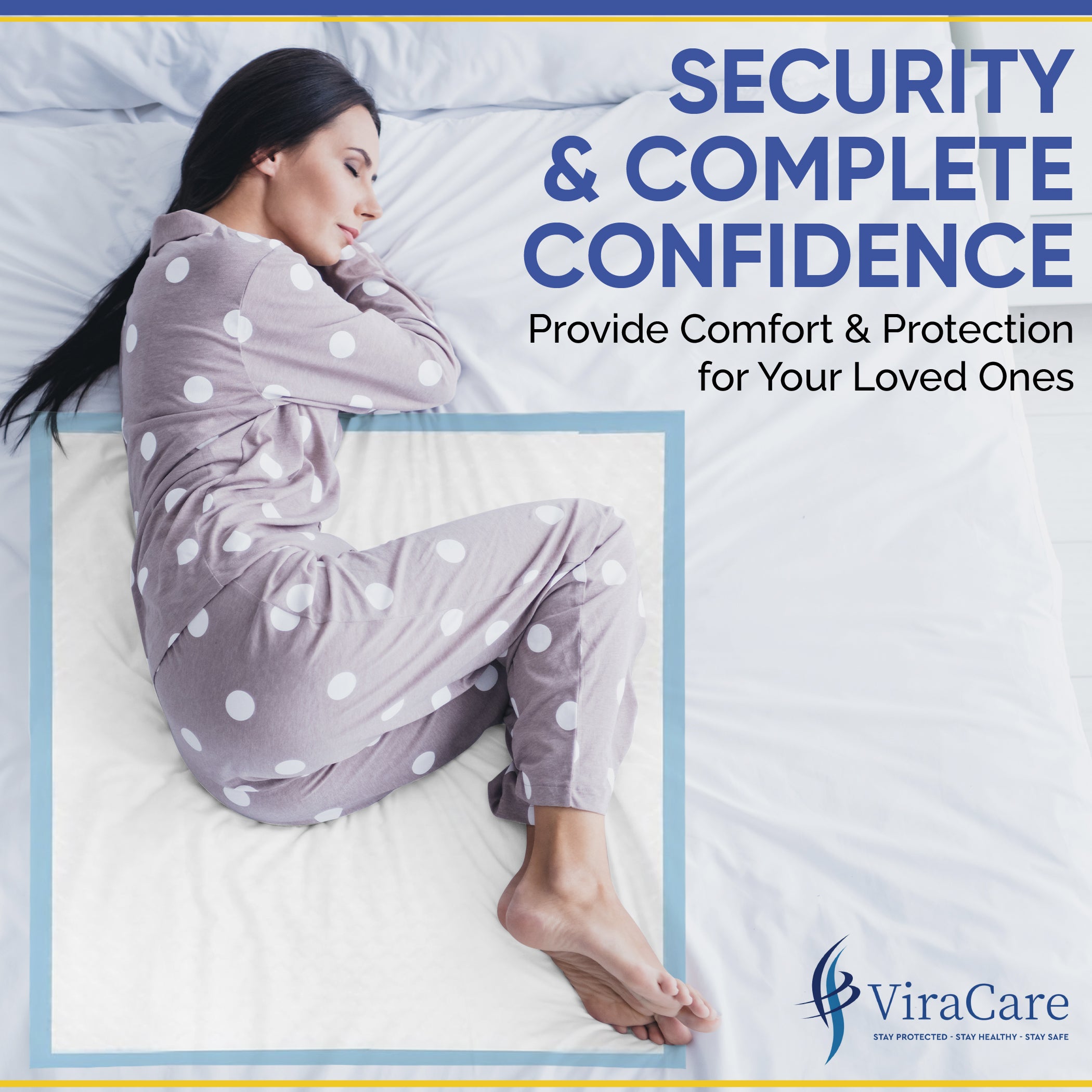 STRONG SELF-ADHESIVE DESIGN: ViraCare incontinence bed pads comes with self-adhesive tabs that hold it firmly in place, preventing any movement during use. The strong yet gentle adhesive ensures a secure fit on any surface, offering stability and comfort. It is easy to apply and remove, leaving no residue behind for a clean and hassle-free experience.