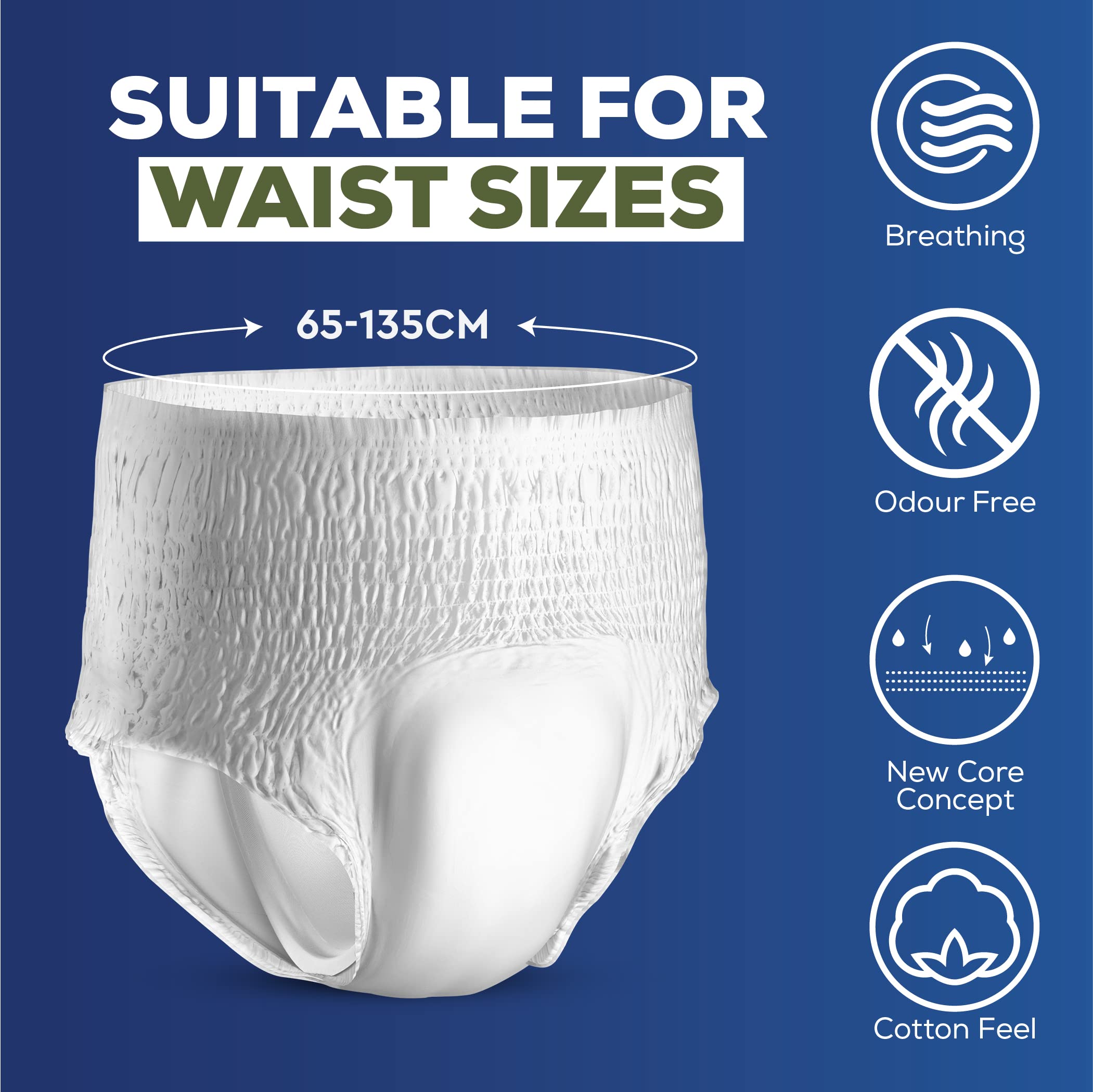 SOFT & BREATHABLE: Our pull-up pants for adults include a cotton top sheet, which is designed for ultimate comfort. Our adult incontinence pull-up pants are breathable, soft, and include a full-rise soft-stretch waistband providing a snug fit.