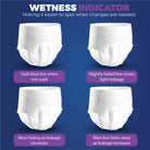 ANTI-LEAK GUARDS: Our pants include anti-leak guards that protect against leaks. These adult incontinence pull-up pants give you a comfortable fit. Our adults pull-up top sheet with cotton enhanced helps wick away moisture.