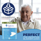 BREATHABLE & SKIN FRIENDLY: Our bladder weakness pads for men are breathable, skin-friendly, and hypoallergenic for sensitive skin. The incontinence pads inner layer is 100 % Hydrophilic with a non-woven polypropylene providing maximum comfort. These men's incontinence pads help to maintain skin health and prevent irritation.