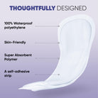 SUPER ABSORBENT & ODOUR LOCKING: Our incontinence Pads are super absorbent and designed to protect against bladder leaks, and our discreet pads for women are perfect to control odors. Our lady's incontinence pads prevent overflowing and help to keep skin clean, dry, and protected.