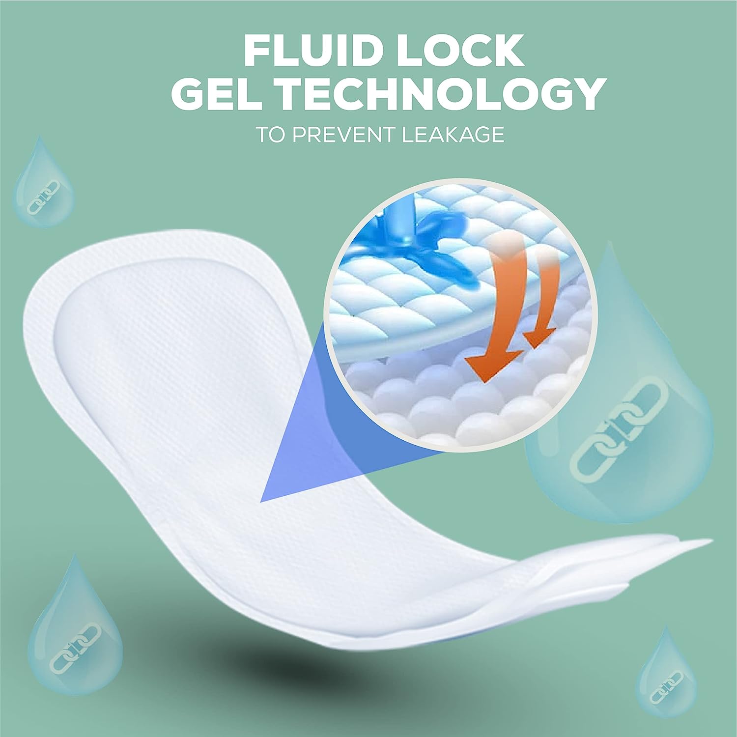 SUPER ABSORBENT & ODOUR LOCKING: Our incontinence Pads are super absorbent and designed to protect against bladder leaks, and our discreet pads for women are perfect to control odors. Our lady's incontinence pads prevent overflowing and help to keep skin clean, dry, and protected.