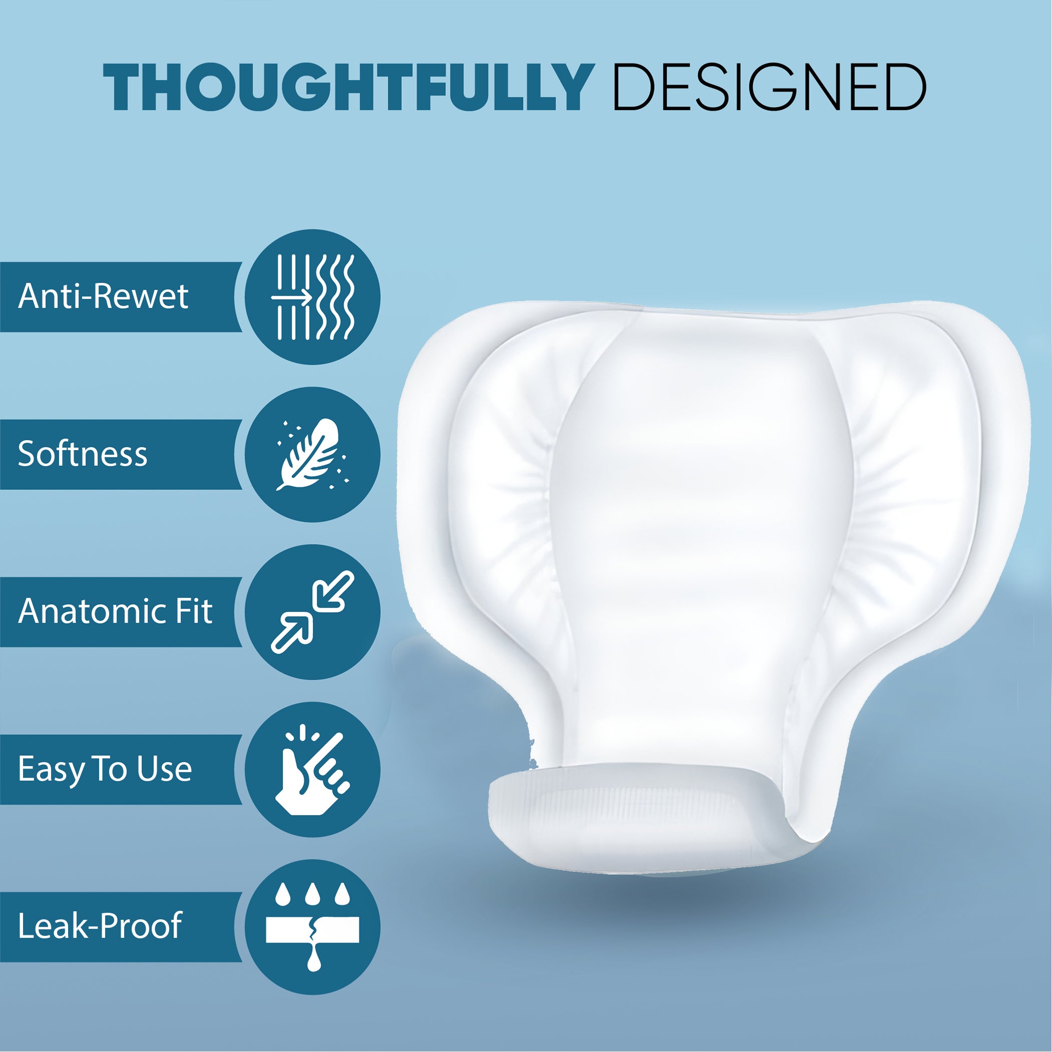 SUPER ABSORBENT & ODOUR LOCKING: Our Incontinence Pads are super absorbent and designed to provide protection against bladder leaks. These discreet pads for men are perfect for controlling odors. Our male incontinence pads prevent overflowing and help in keeping your skin clean, dry, and protected.