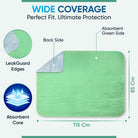 Green Incontinence Bed Pads: 85x115 cm, Washable, Without Tucks/Flaps (Qty:2)