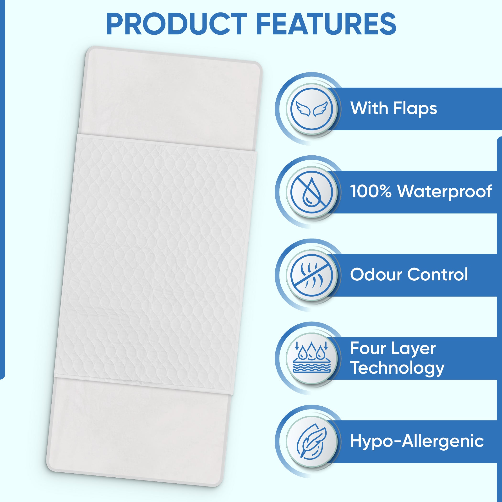 White Incontinence Bed Pads: 85x115 cm, Washable, With Tucks/Flaps (Qty:2)