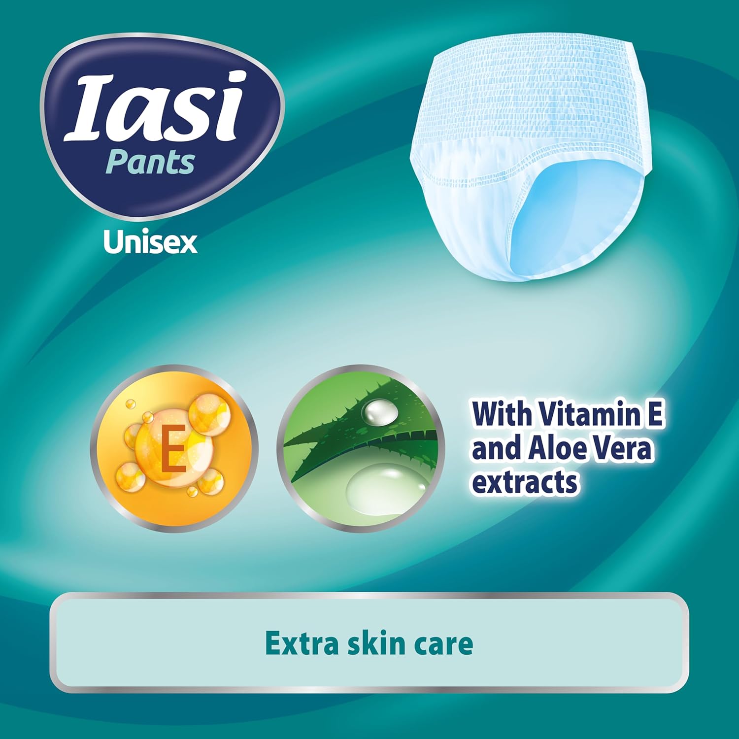 Kind To Skin: Safe skin protection is a top priority for IASI products, being worn for many hours every day. Iasi incontinence products have been designed based on the Sensitive Concept, which combines maximum absorbency with skin-friendly protection. Each product also contains soothing extracts of Aloe Vera and Vitamin E for greater skin care.