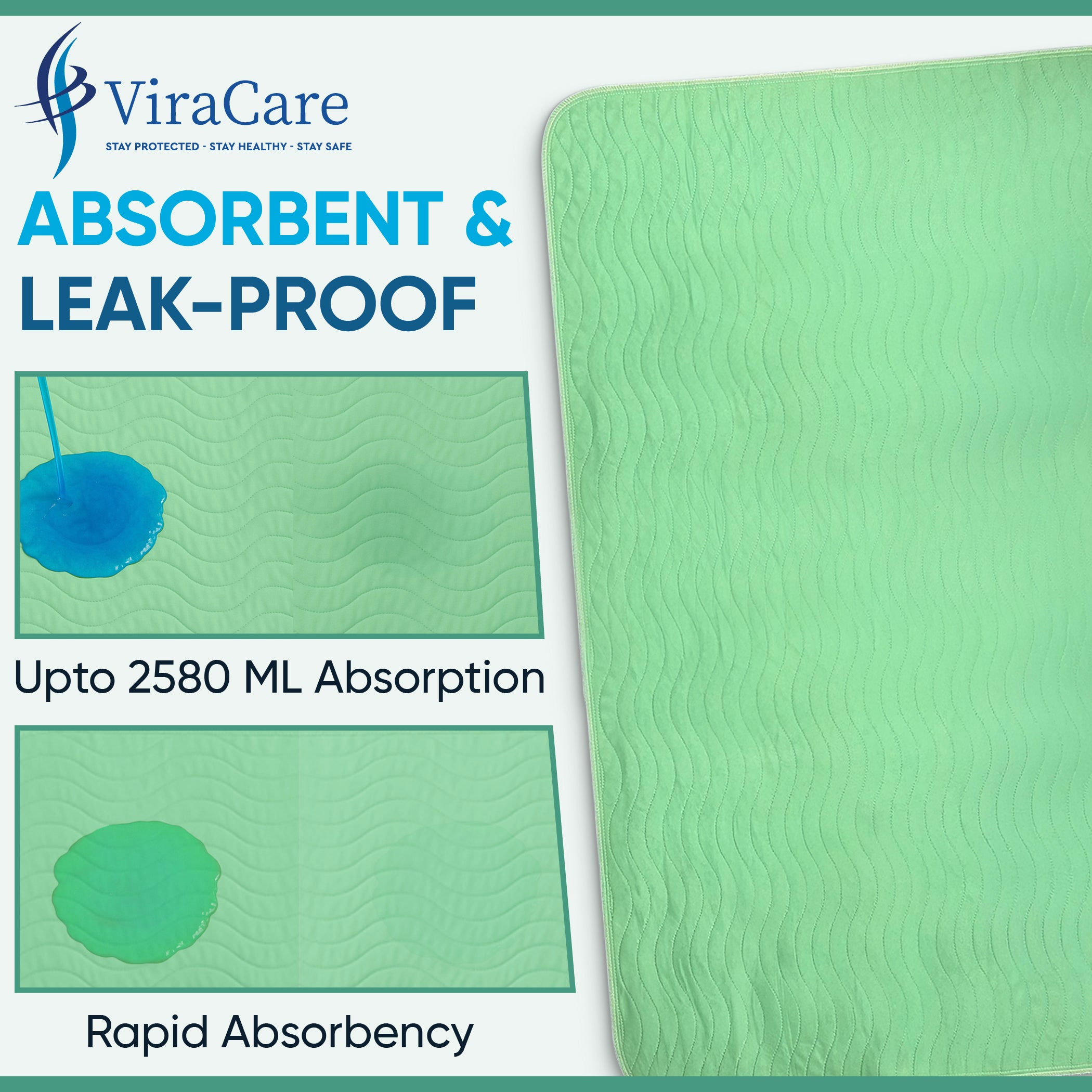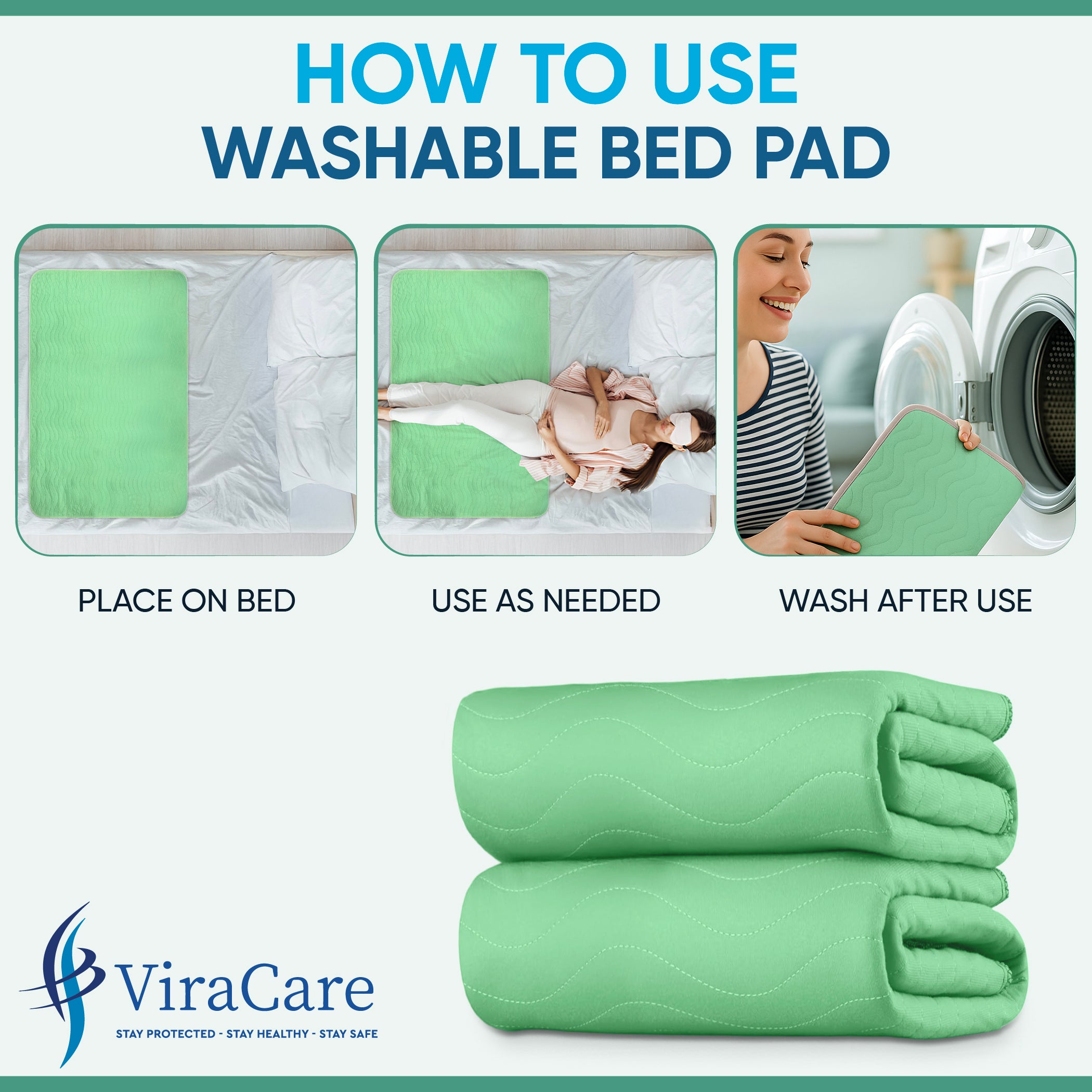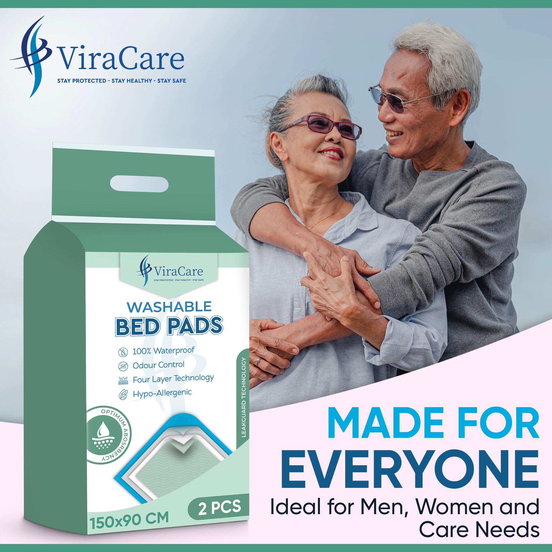 MAXIMUM ABSORBENCY WITH LEAK LOCK TECHNOLOGY: ViraCare washable bed pads are designed with a high-absorbency multi 4 layers core. Each pad can quickly absorb moisture, preventing leaks and odours from reaching your furniture. These bed wetting mats are ideal for overnight use and provide long-lasting dryness and peace of mind for both users and caregivers.