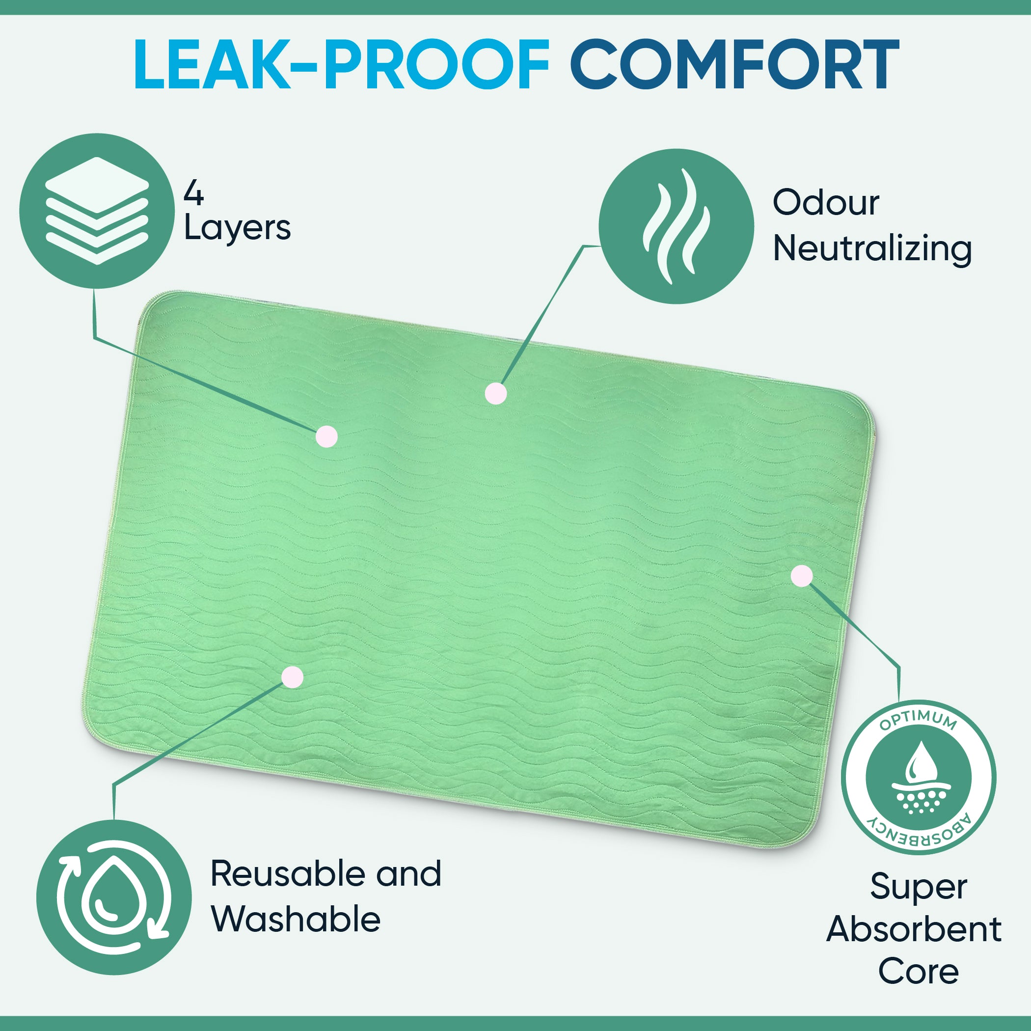 ULTIMATE PROTECTION FOR BEDS AND FURNITURE: Washable bed protectors offer reliable protection against leaks, spills, and incontinence accidents. Incontinence bed sheets are ideal for adults, seniors, children. Incontinence bed pads help keep mattresses, sofas, chairs, and car seats dry and clean. Bed pads are a perfect solution for home care, potty training and essential for every household.