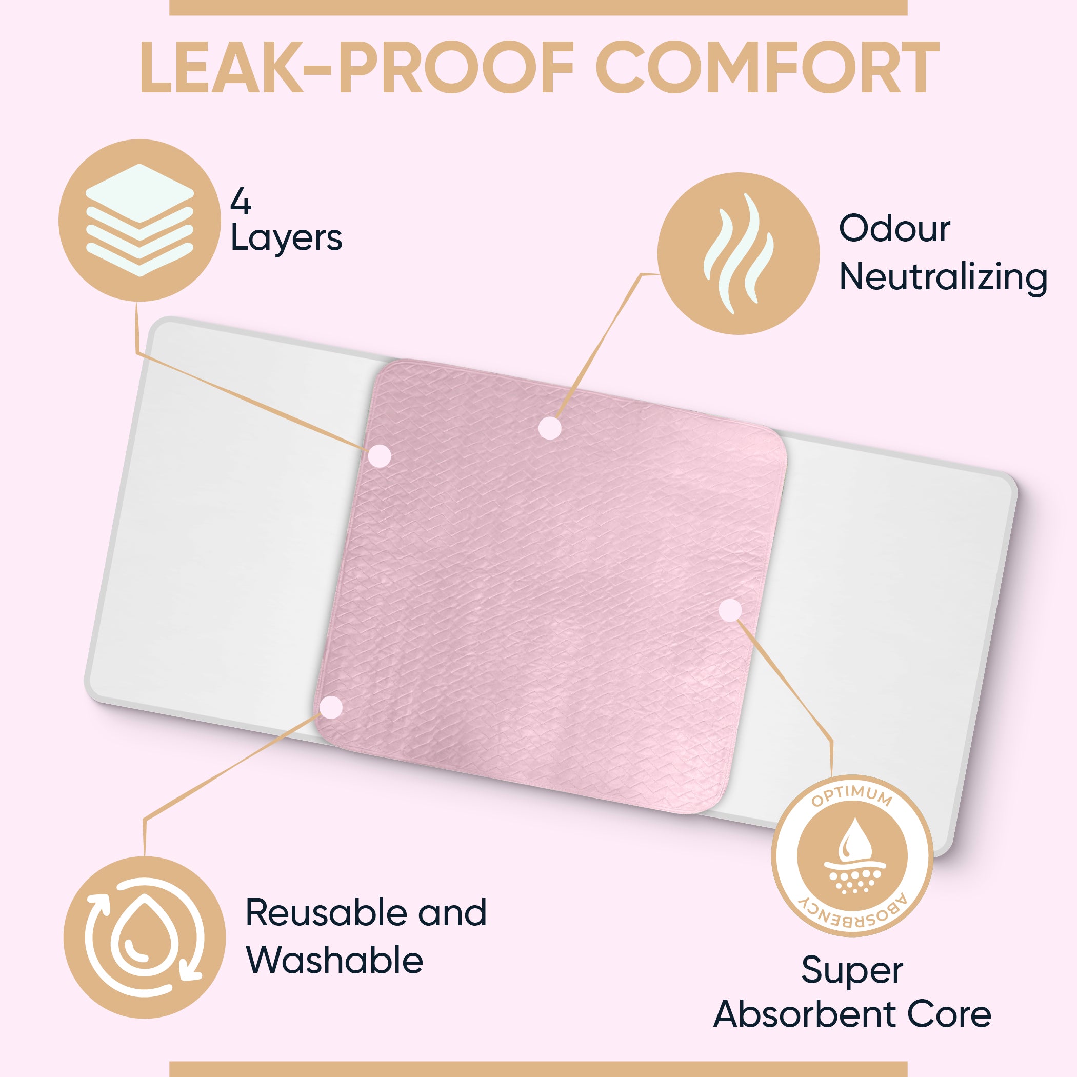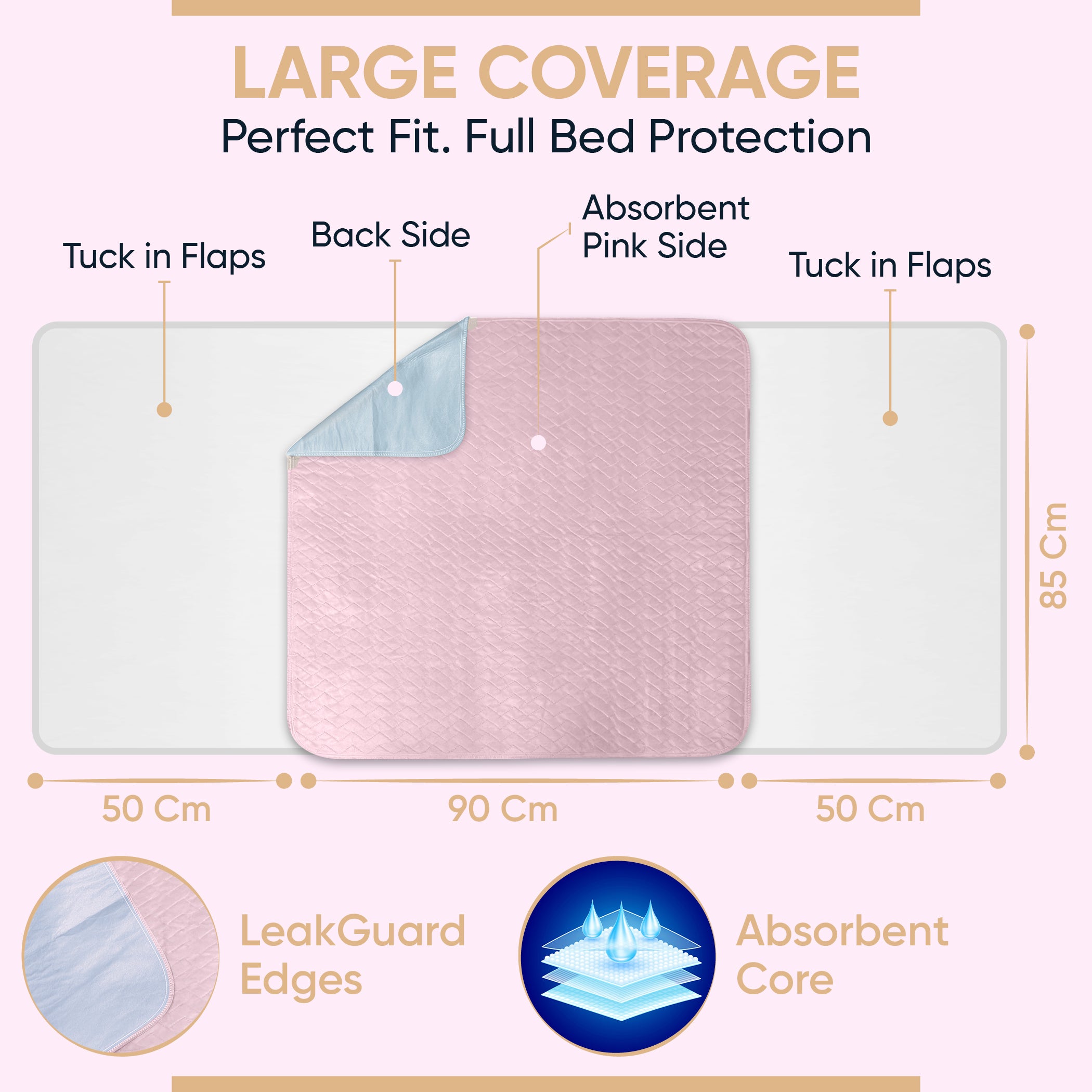 Pink Incontinence Bed Pads: 85x90 cm, Washable (Qty:2)