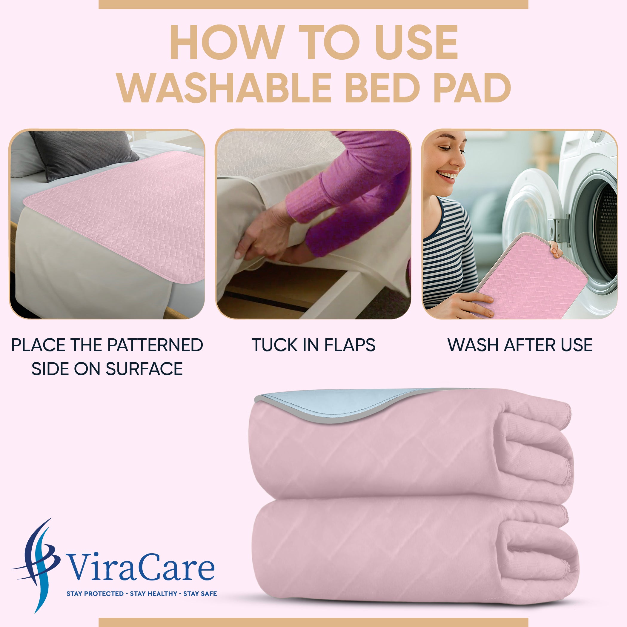 MAXIMUM ABSORBENCY WITH LEAK LOCK TECHNOLOGY: ViraCare washable bed pads are designed with a high-absorbency multi 4 layers core. Each pad can quickly absorb moisture, preventing leaks and odours from reaching your furniture. These bed wetting mats are ideal for overnight use and provide long-lasting dryness and peace of mind for both users and caregivers.
