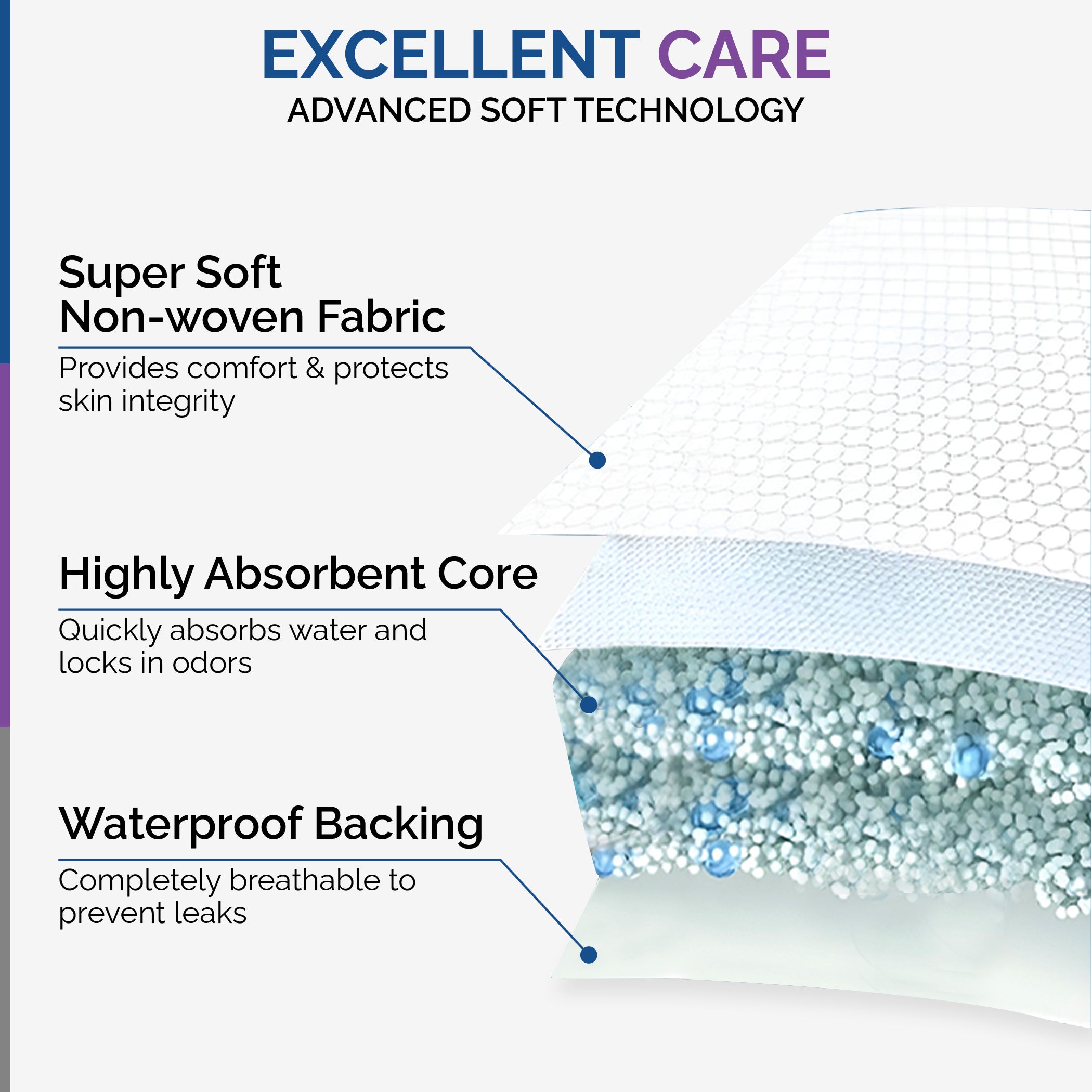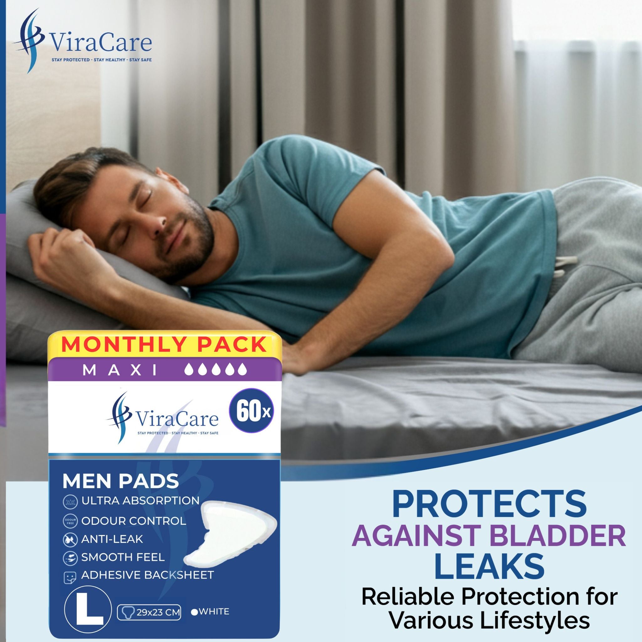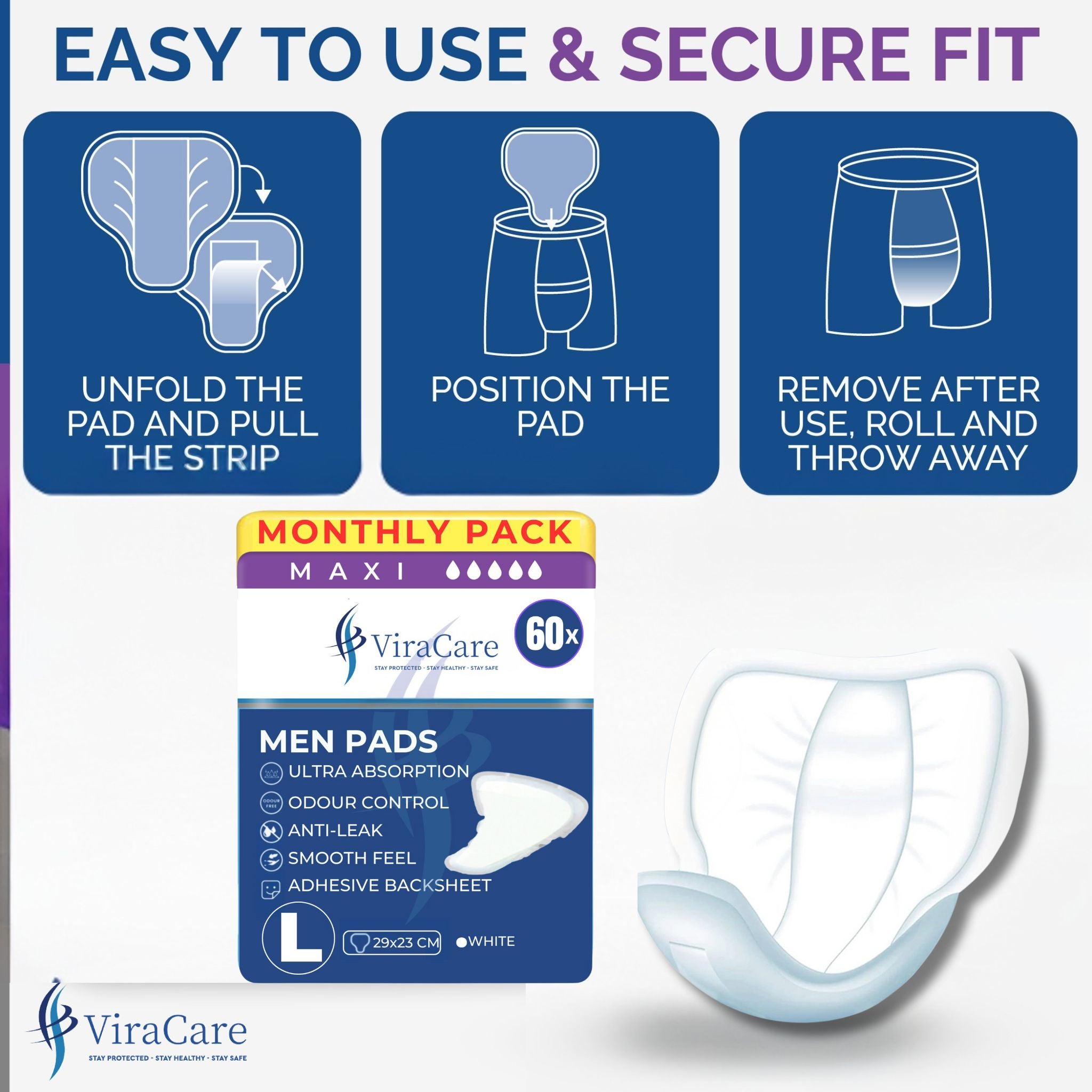ENHANCED BREATHABILITY & COVERAGE: Our maxi men's pads are designed to deliver optimal airflow and provide expansive coverage. A 100% hydrophilic inner layer paired with a soft non-woven finish in our incontinence pads ensures that even during heavier leakage, your skin remains cool and comfortable.