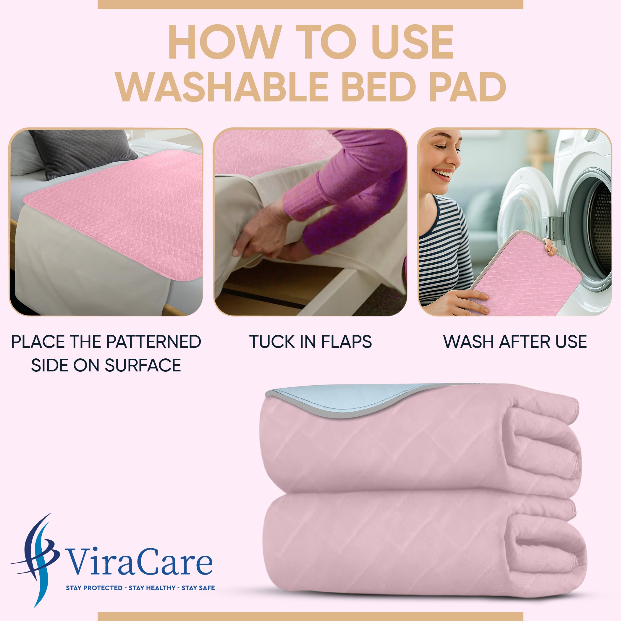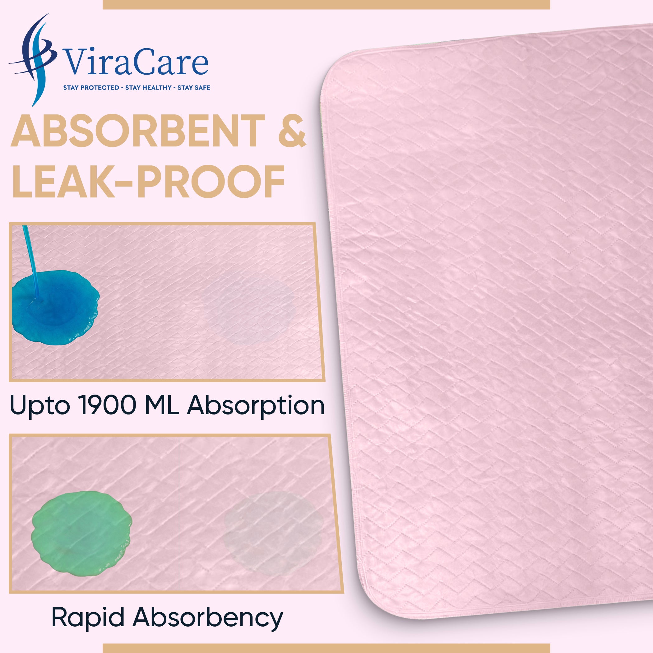 MAXIMUM ABSORBENCY WITH LEAK LOCK TECHNOLOGY: ViraCare washable bed pads are designed with a high-absorbency multi 4 layers core. Each pad can quickly absorb moisture, preventing leaks and odours from reaching your furniture. These bed wetting mats are ideal for overnight use and provide long-lasting dryness and peace of mind for both users and caregivers.