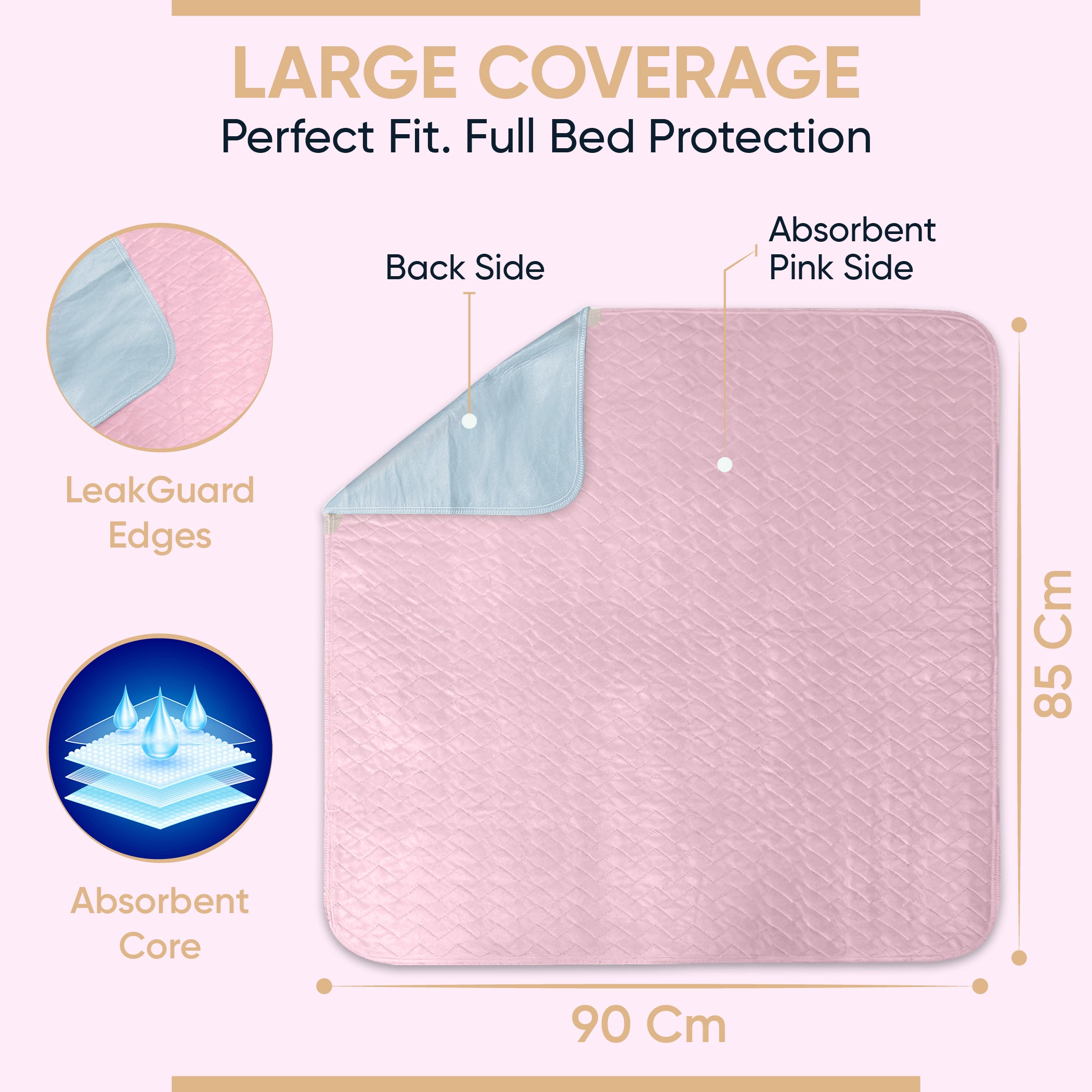 Pink Incontinence Bed Pads, 85x90 cm, Washable (Qty:2)