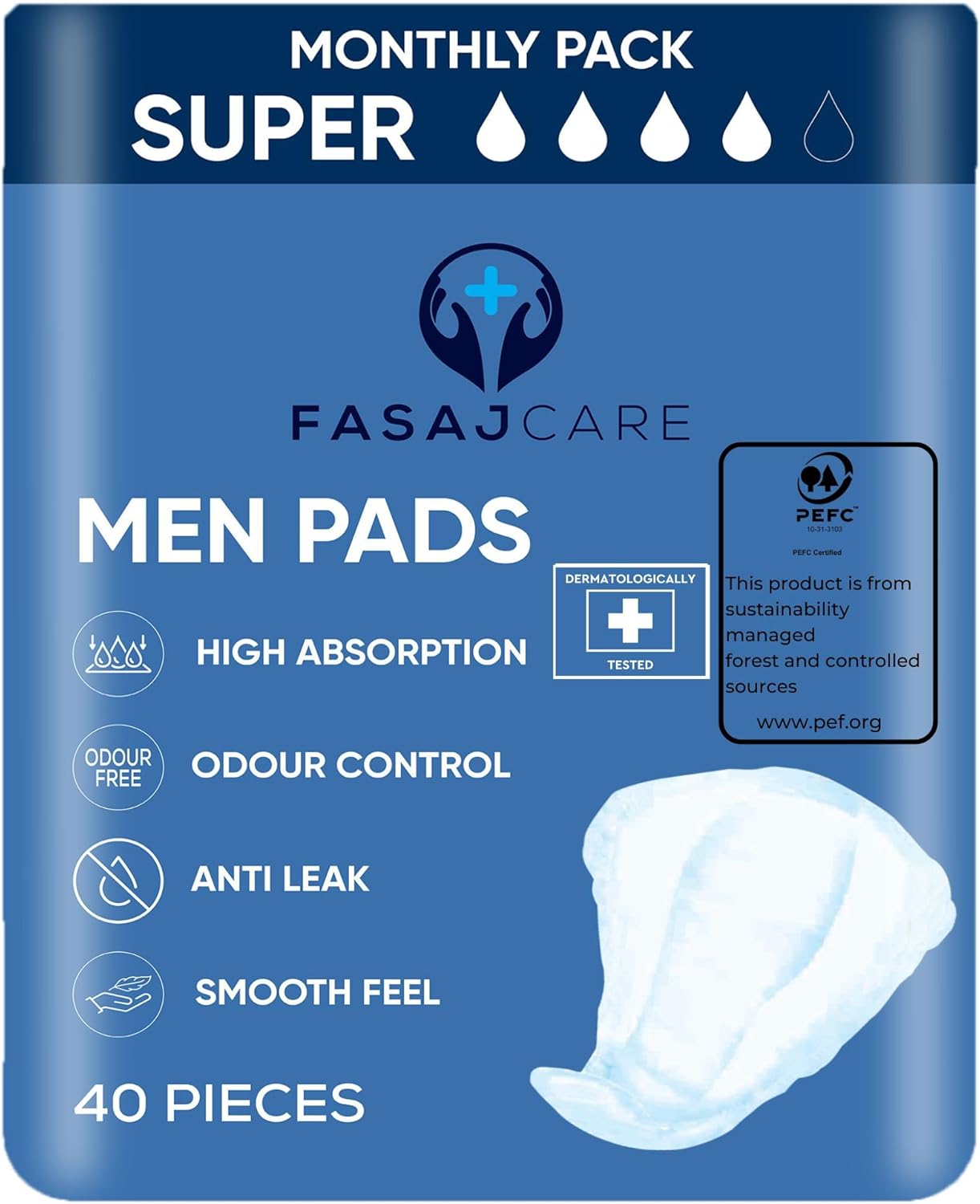 Super Incontinence Pads Men, High Absorption (Qty: 40)