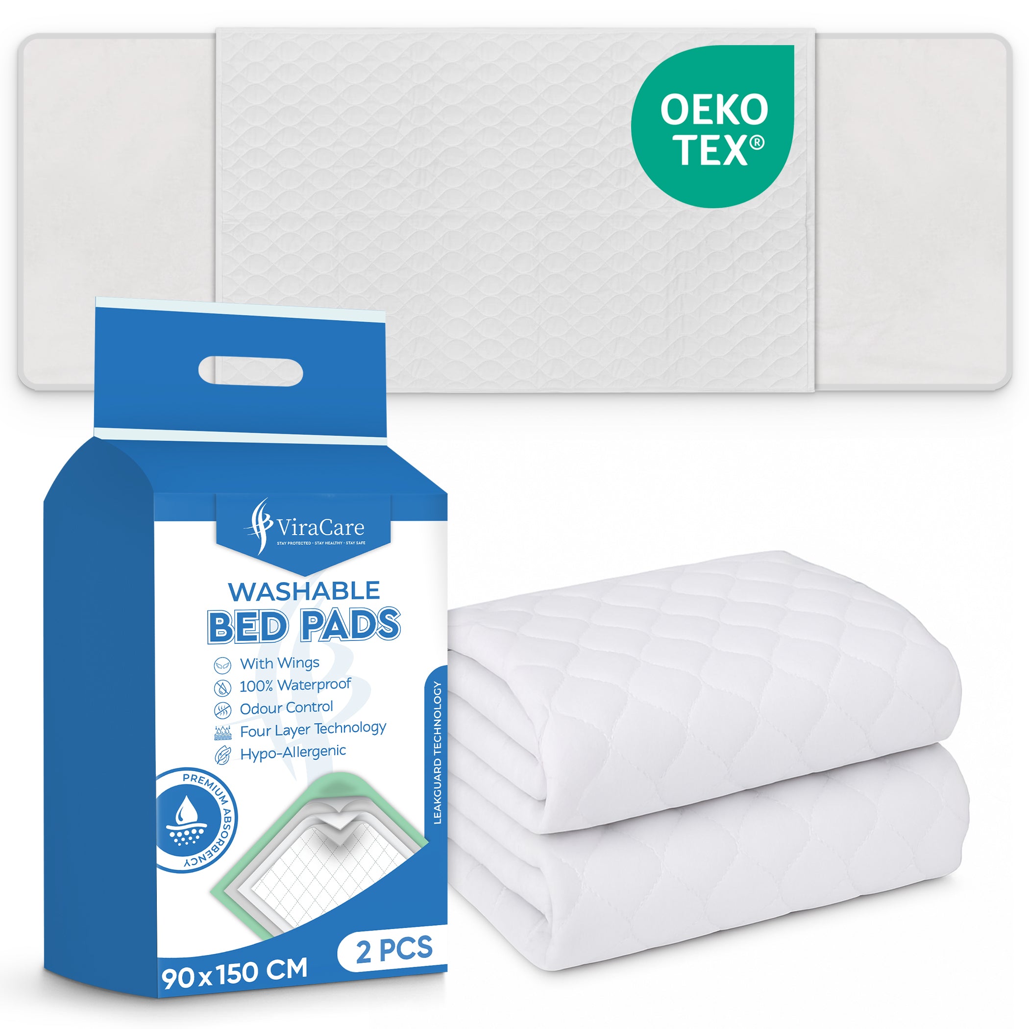 White Incontinence Bed Pads: 90x150 cm, Washable, With Tucks/Flaps (Qty:2)