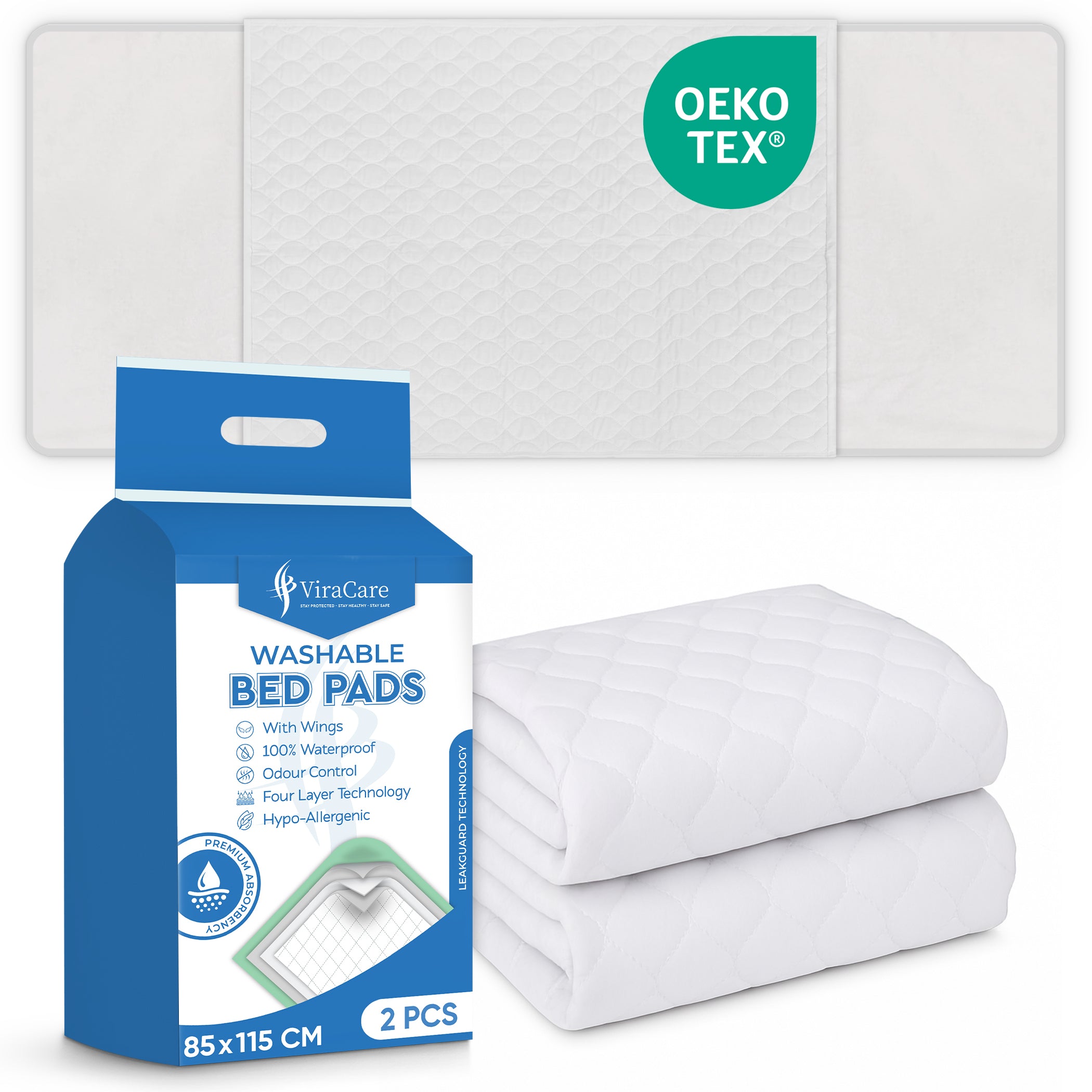 White Incontinence Bed Pads: 85x115 cm, Washable, With Tucks/Flaps (Qty:2)
