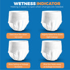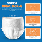 SOFT & BREATHABLE: Our pull-up pants are designed for ultimate comfort with a cotton top sheet. Our adult incontinence pull-up pants are breathable, soft, and a full-rise soft-stretch waistband provides a snug fit.