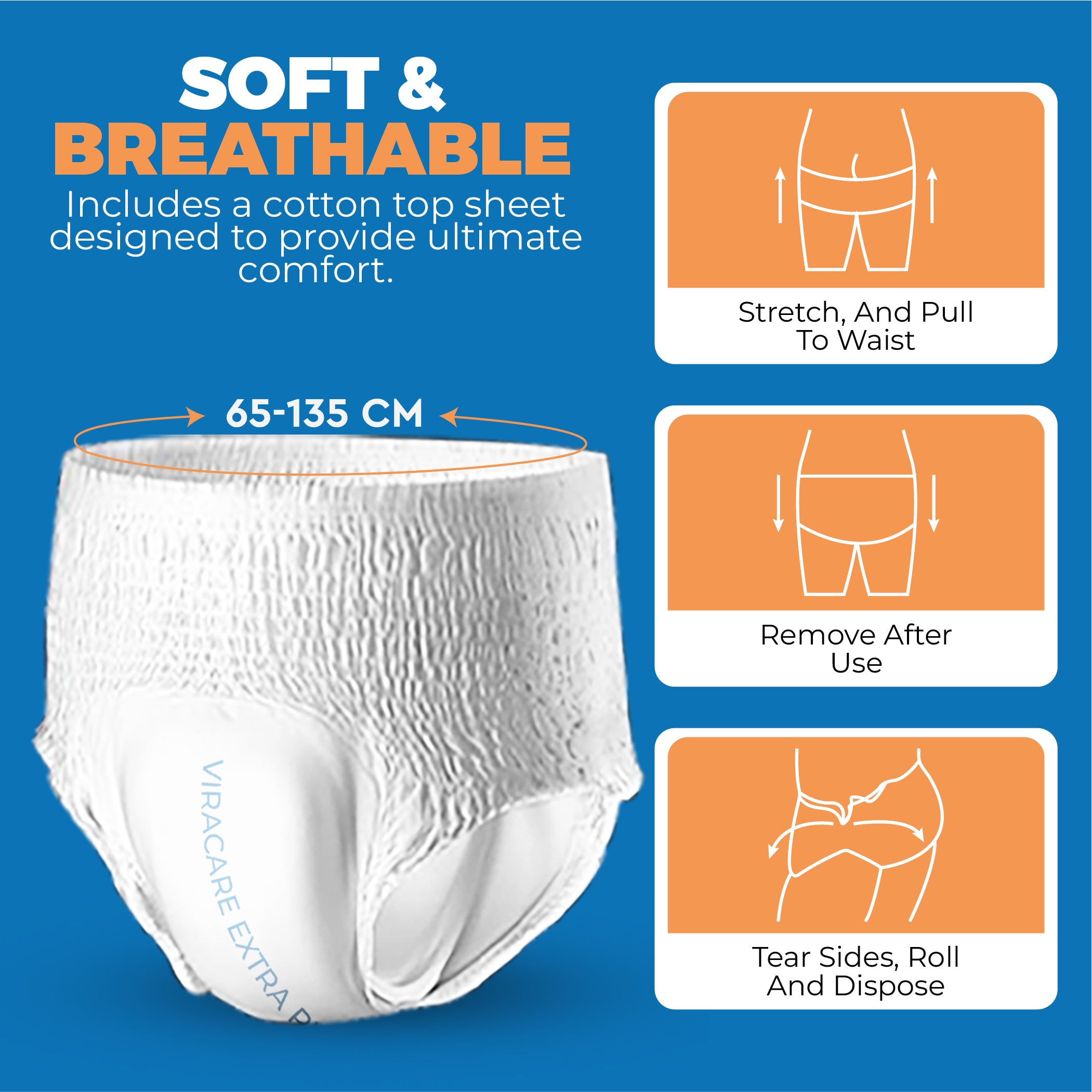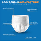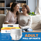 SOFT & BREATHABLE: Our pull up pants adult are designed for ultimate comfort with a cotton top sheet. Our adult incontinence pull-up pants are breathable, soft, and a full-rise soft-stretch waistband provides a snug fit.