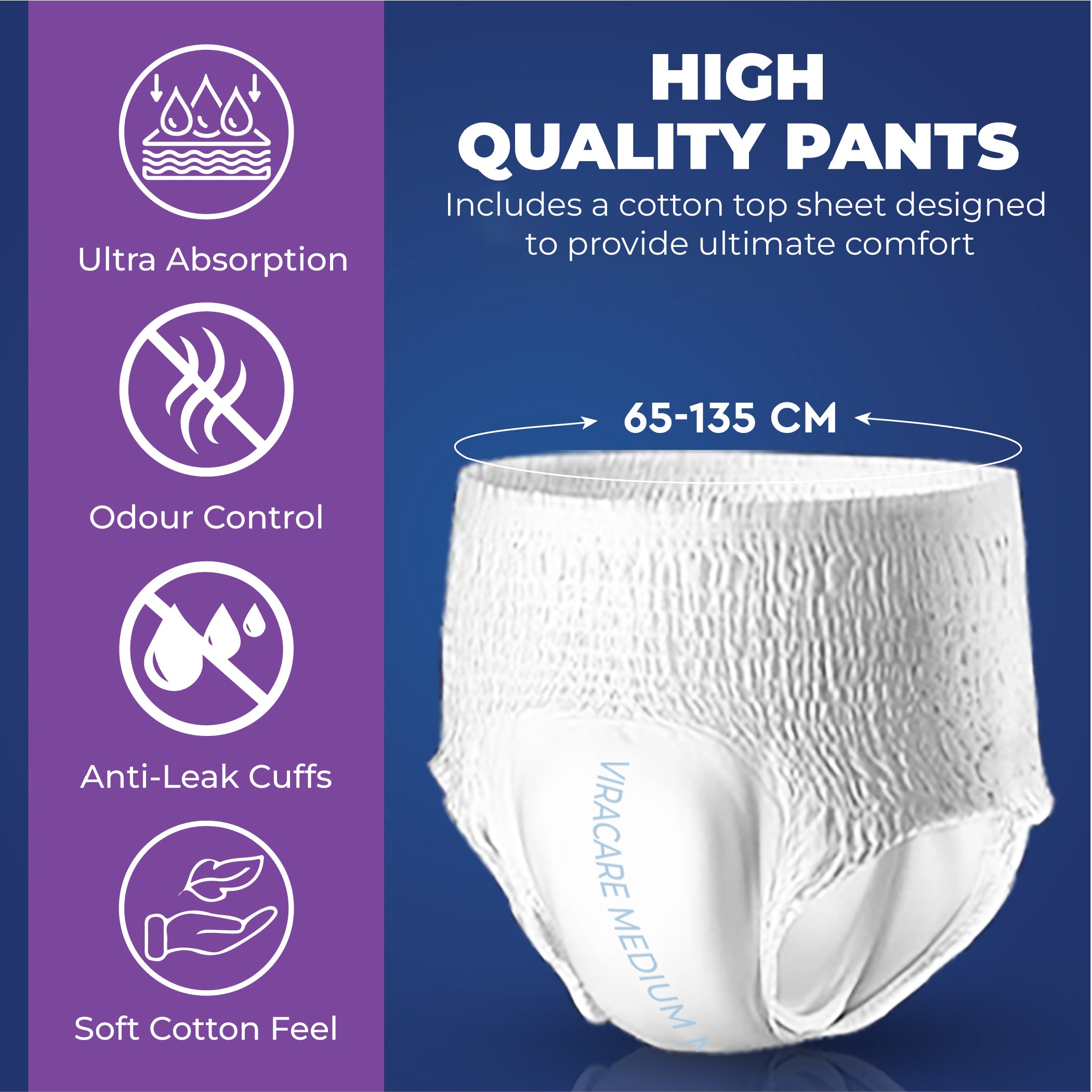 “Excellent quality Super absorbent Pull-Up Pants - for my spouse and he is happy with them. We’re satisfied with Vira Care’s excellent service and products - strongly recommended. Thank you Vira Care”