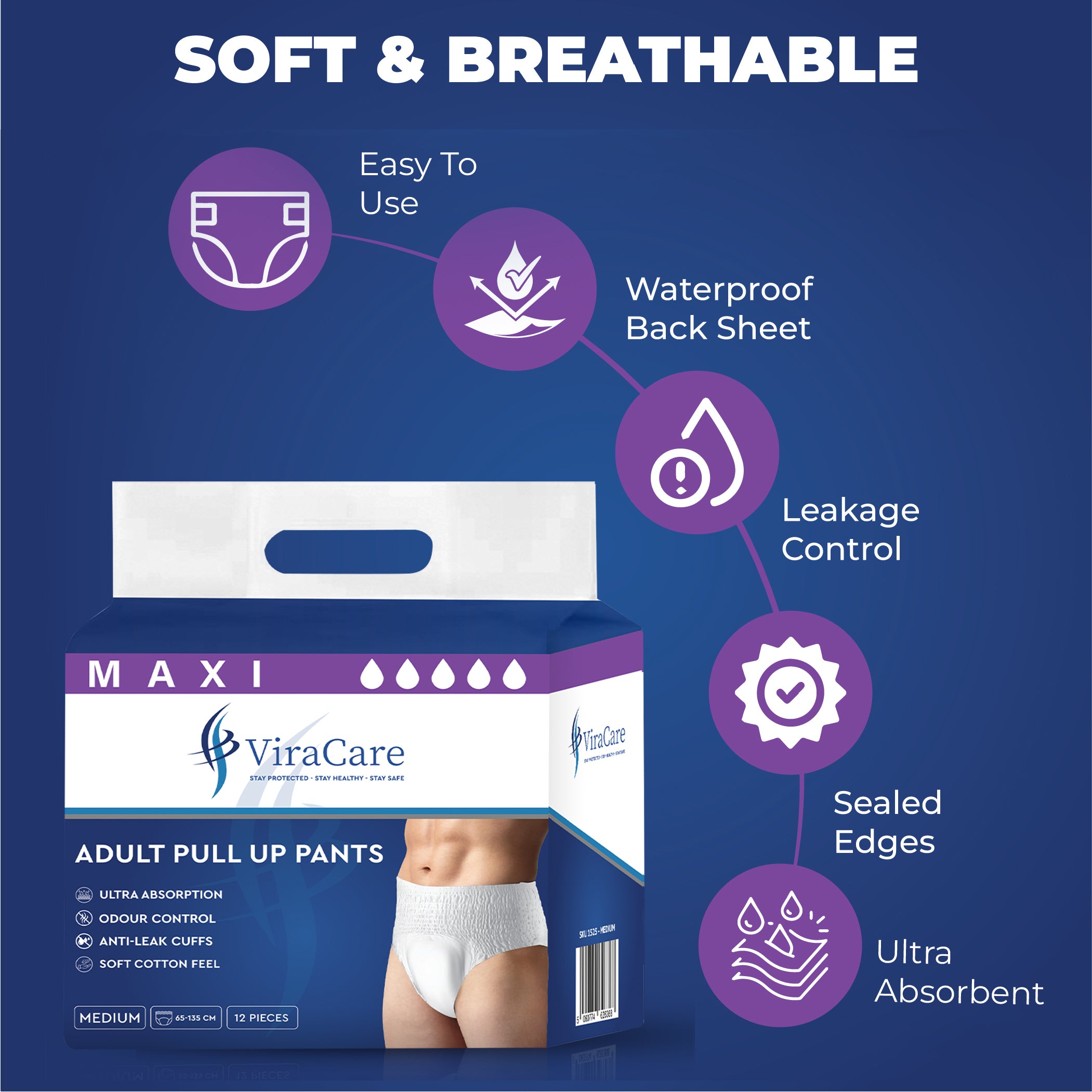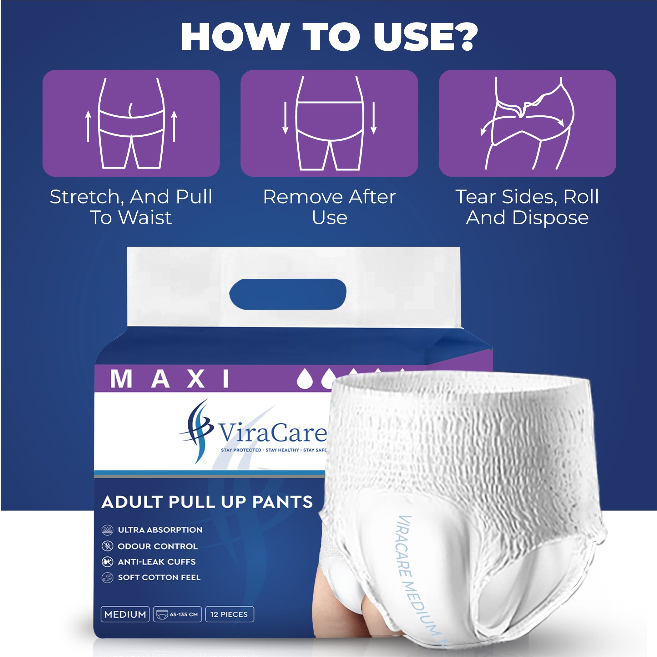 SOFT & BREATHABLE: Our pull up pants adult are designed for ultimate comfort with a cotton top sheet. Our adult incontinence pull-up pants are breathable, soft, and a full-rise soft-stretch waistband provides a snug fit.