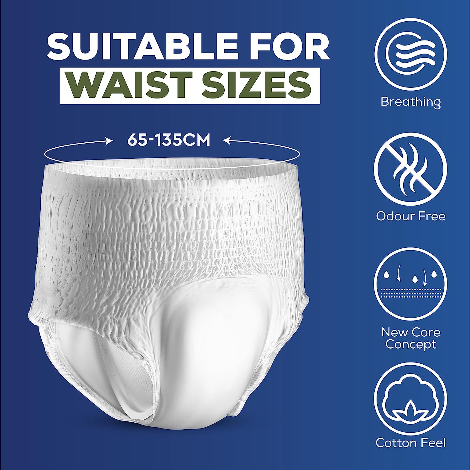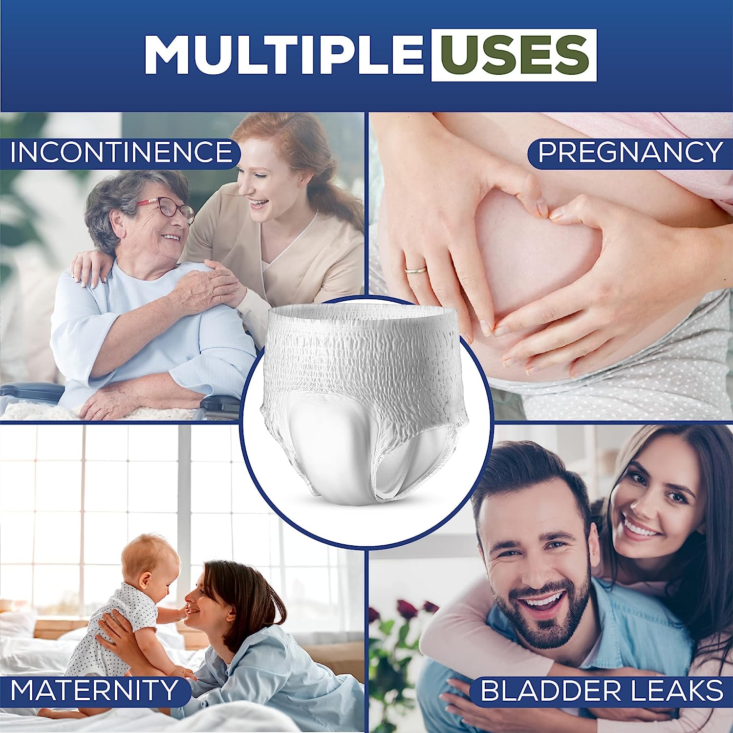 ANTI-LEAK GUARDS: Our pants include anti-leak guards, which protect against leaks. These adult incontinence pull-up pants give you a comfortable fit. Our adult pull-ups also include a top sheet with cotton, which helps wick away moisture and gives you a comfortable fit. Our adults pull-up top sheet with cotton enhanced helps wick away moisture.