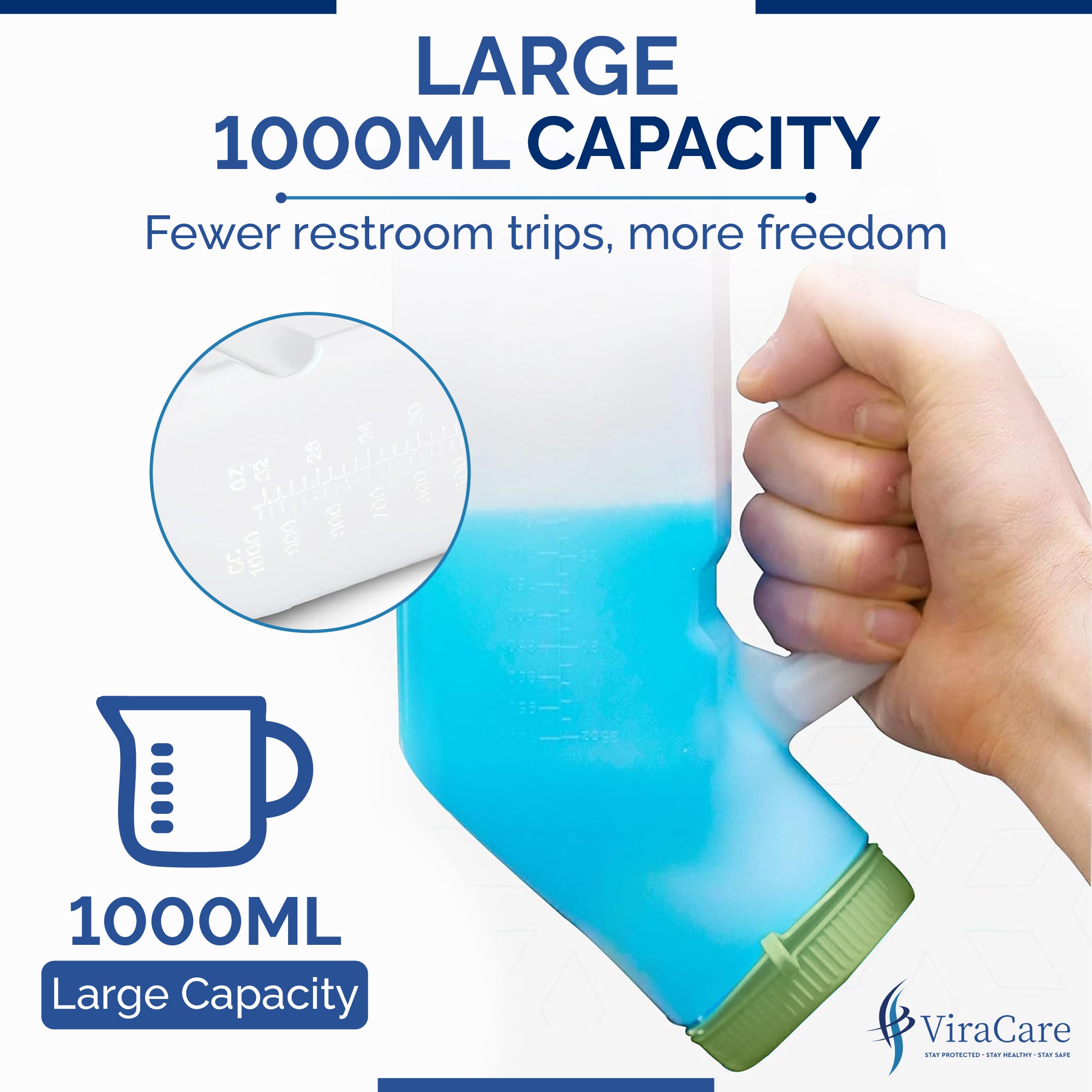 LARGE CAPACITY AND WIDE OPENING: Our urinal bottle with a generous 1000ml capacity with special volume measurement lines, allows you to explore for longer with fewer trips to the restroom. The wide, smooth opening of this plastic urinal ensures ease of use, even in low-light situations.