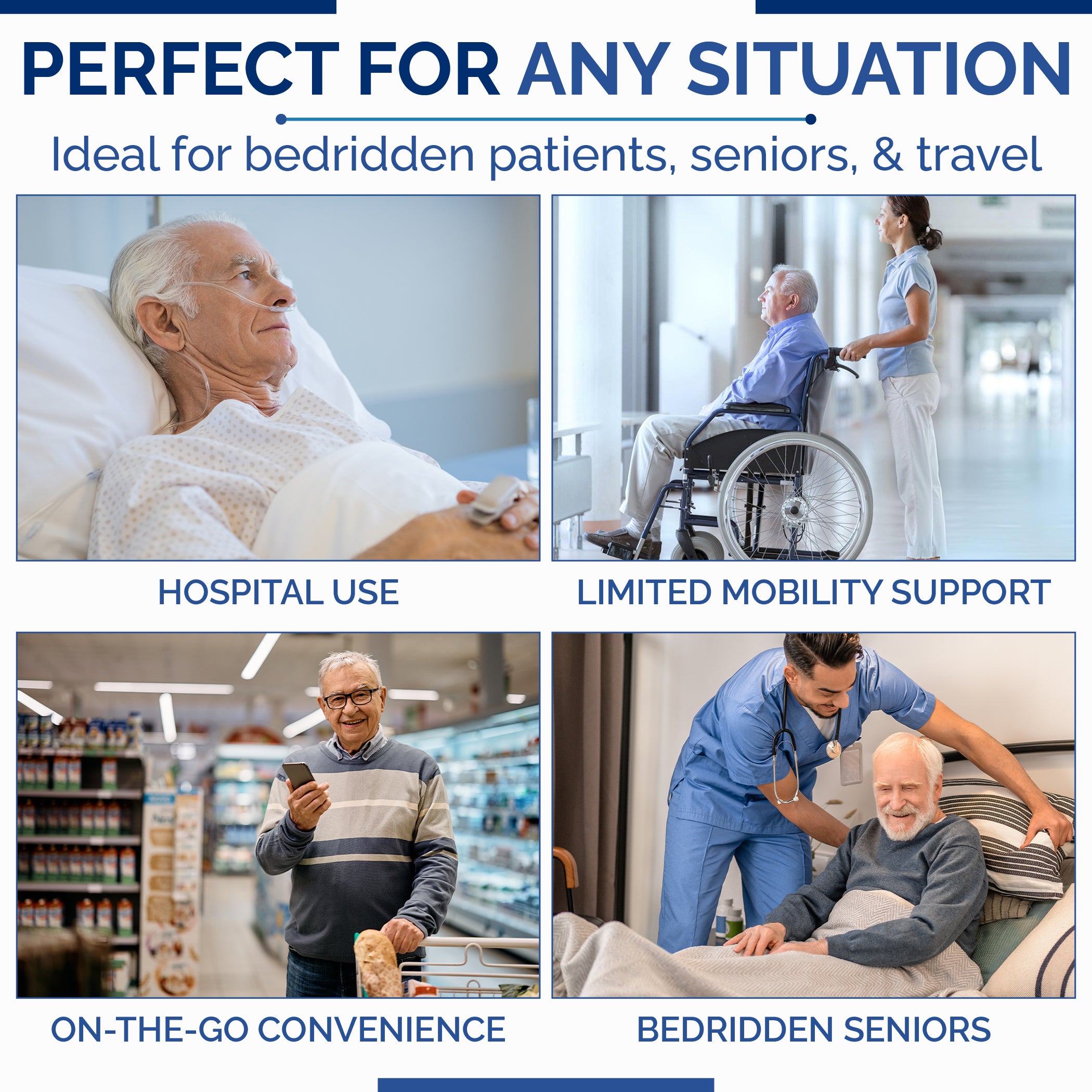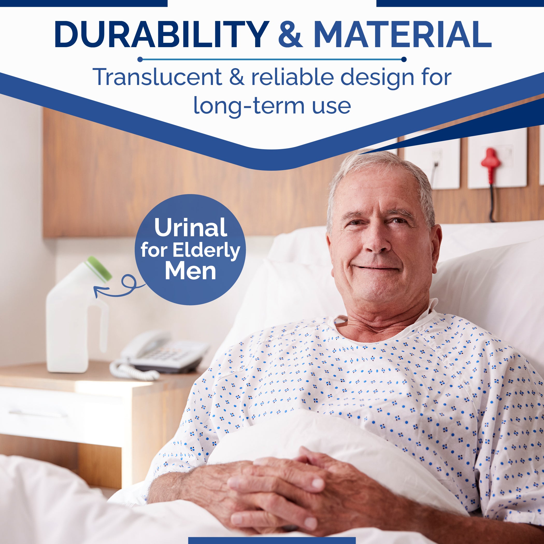 MULTI-PURPOSE URINAL BOTTLES: This portable men's urinal is Ideal for hospital use, for bedridden seniors, and for those with limited mobility. This versatile urinal bottle provides a convenient solution for various situations.