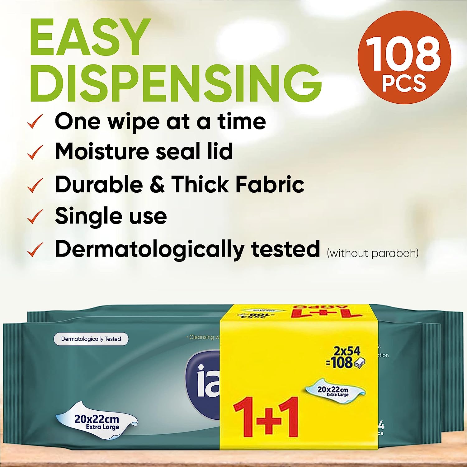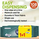 Adult Aloe Vera Wet Wipes, L (108 Pack)