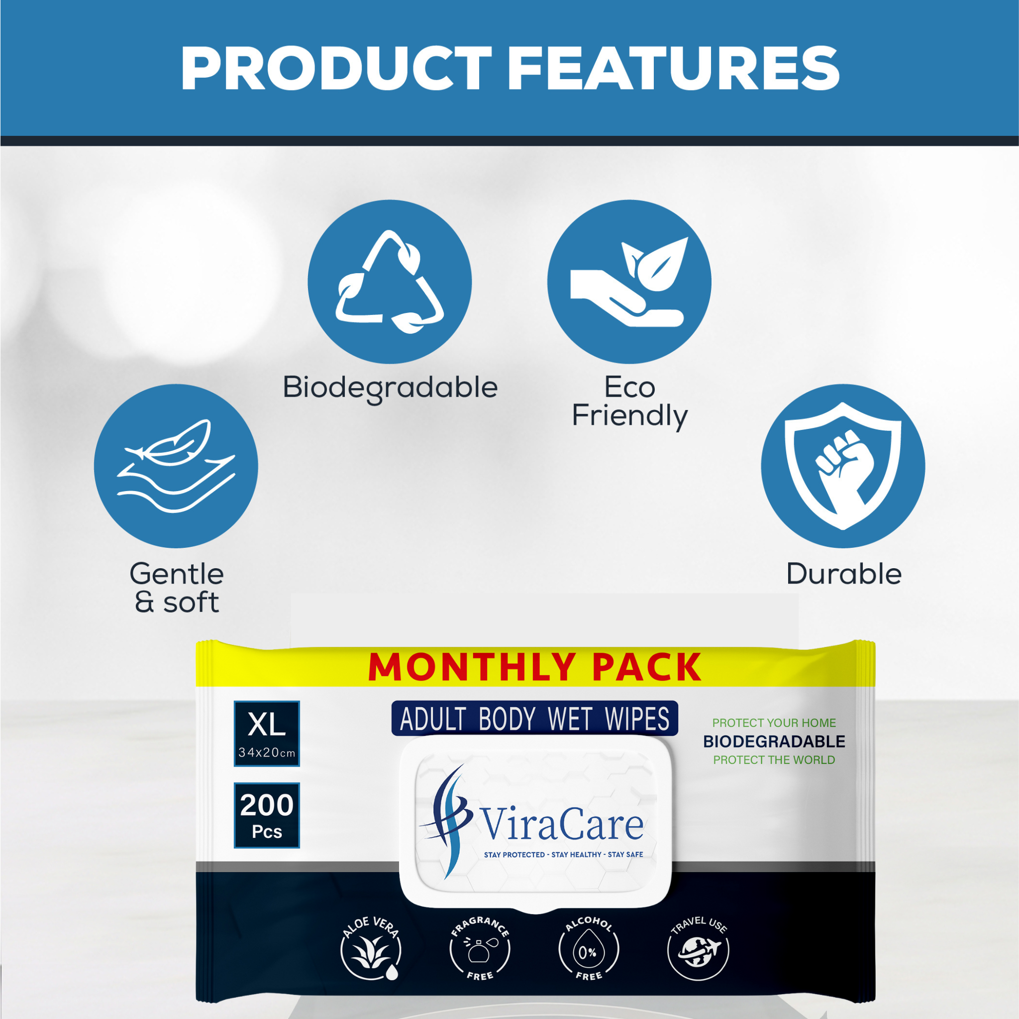 Adult Aloe Vera Wet Wipes, XL (200 Pack)