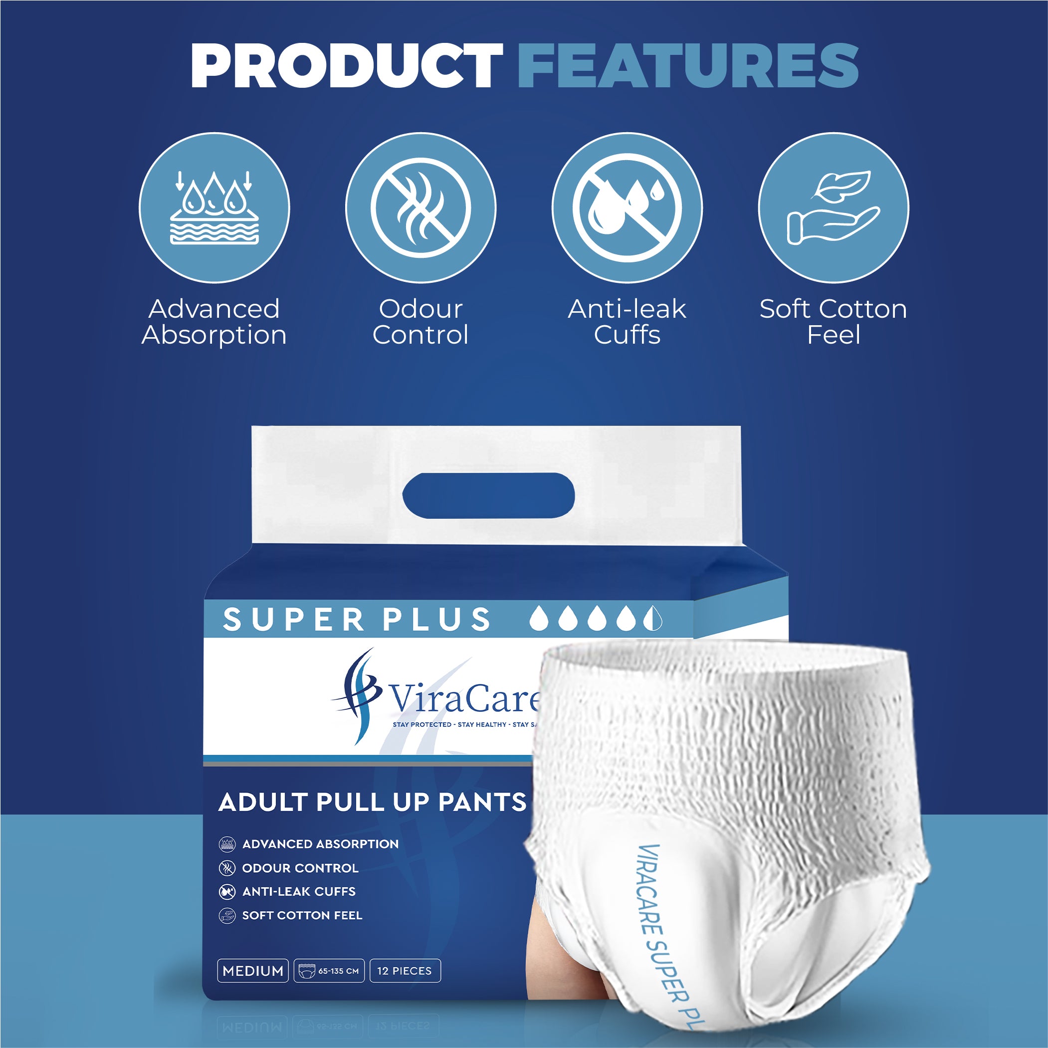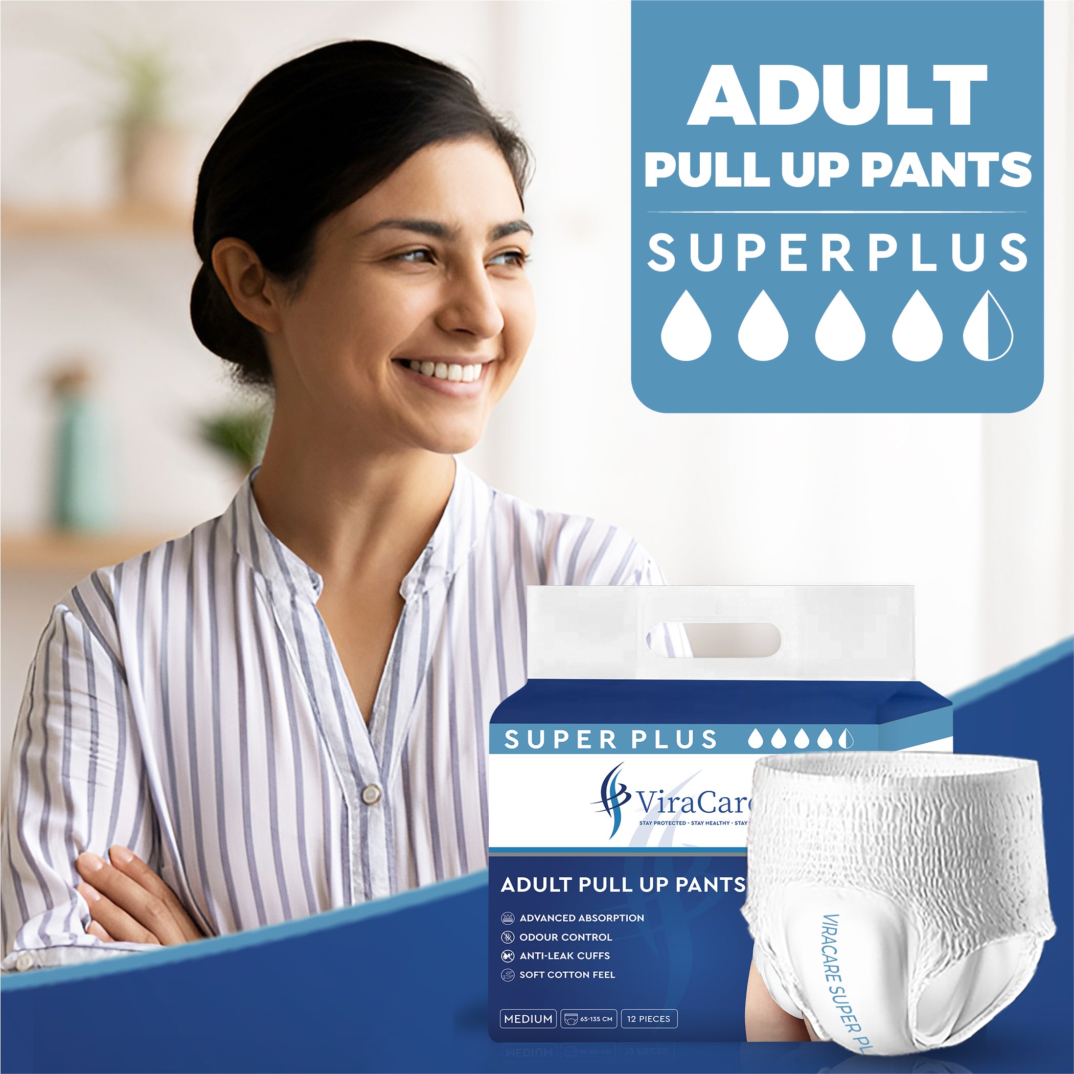 Adult Pull Up Pants Super Plus, Unisex, M, L, XL (Qty: 48)