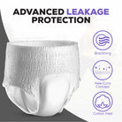 ANTI-LEAKS GUARD: Our pants include anti-leak guards to protect against leaks. With a comfortable fit and a cotton-enhanced top sheet that helps wick away moisture, our adult pull-up pants provide reliable protection.